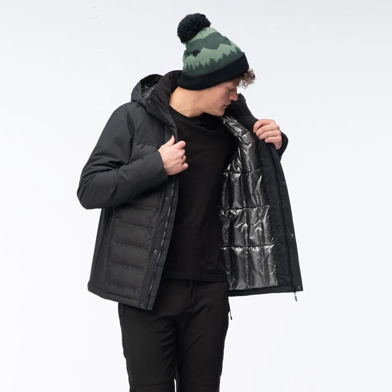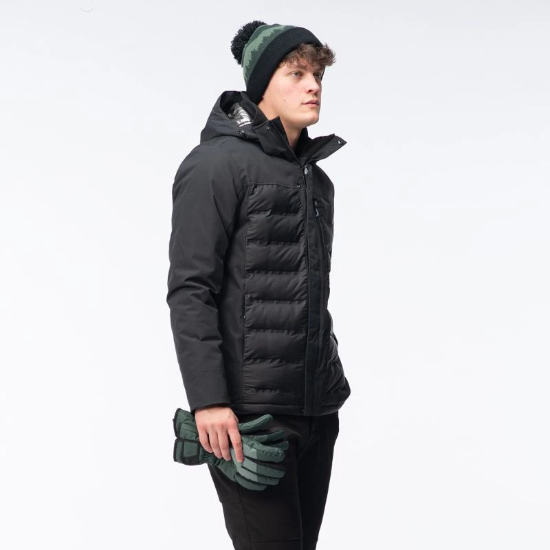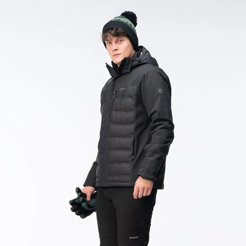 Pánská zateplená bunda Hi-TecHELTEN má voděodolnou membránu s vodním sloupcem 10 000 mm H2O a prodyšnost 1 000 g/m²/24 h. Navíc povrchová úprava DWR aplikovaná na bundu zvyšuje úroveň nepromokavosti vnější tkaniny. Syntetická výplň poskytne tepelný komfort a neztratí své vlastnosti, ani když navlhne. Tepelně reflexní úprava na vnitřní straně pomáhá udržet správnou teplotu, když venku mrzne. Bunda HELTEN má vnitřní kapsu, kapsu na skipas a další kapsu na trupu. Stahovací šňůrka v pase umožňuje upravit střih a chránit tak záda před chladným vzduchem.