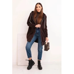Zateplená dámská mikina s kapucí a zipem hnědá