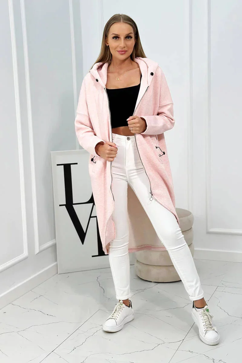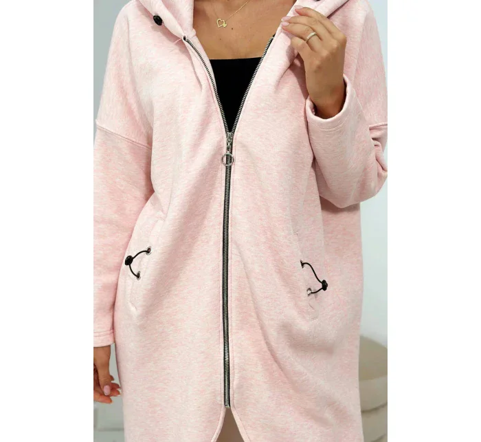 Zateplená dlouhá mikina růžová melanž - Kesi