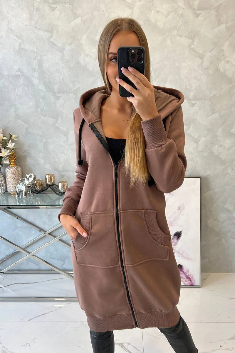 Představujeme vám zateplenou mikinu. Mikina má kapuci na zip a kapsy. Mikina je vyrobena ze zatepleného materiálu. Velikost je univerzální a vyhovuje dámám, které nosí velikost S, M nebo L.