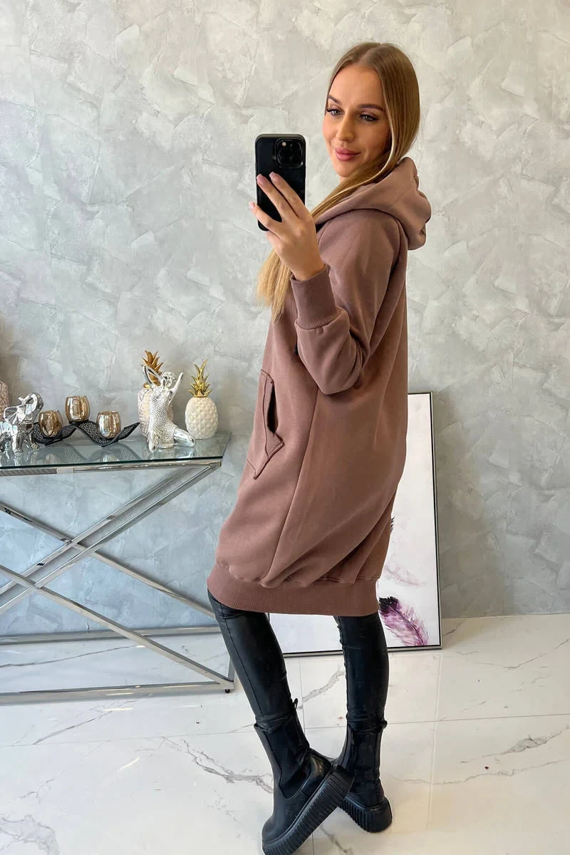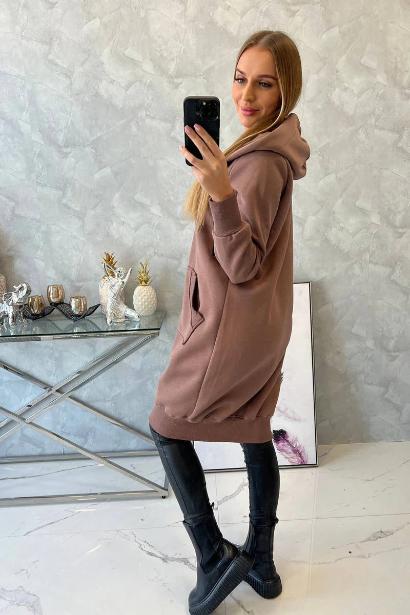 Zateplená dlouhá mikina s kapucí červená
