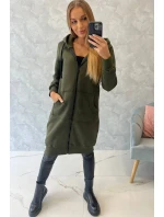 Zateplená dlouhá mikina s kapucí v barvě světle růžová
