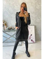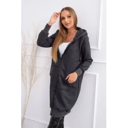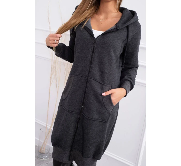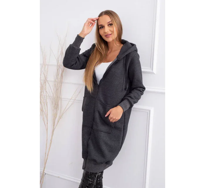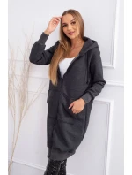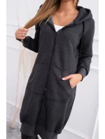 Zateplená mikina s dlouhými zády a kapucí v grafitové barvě