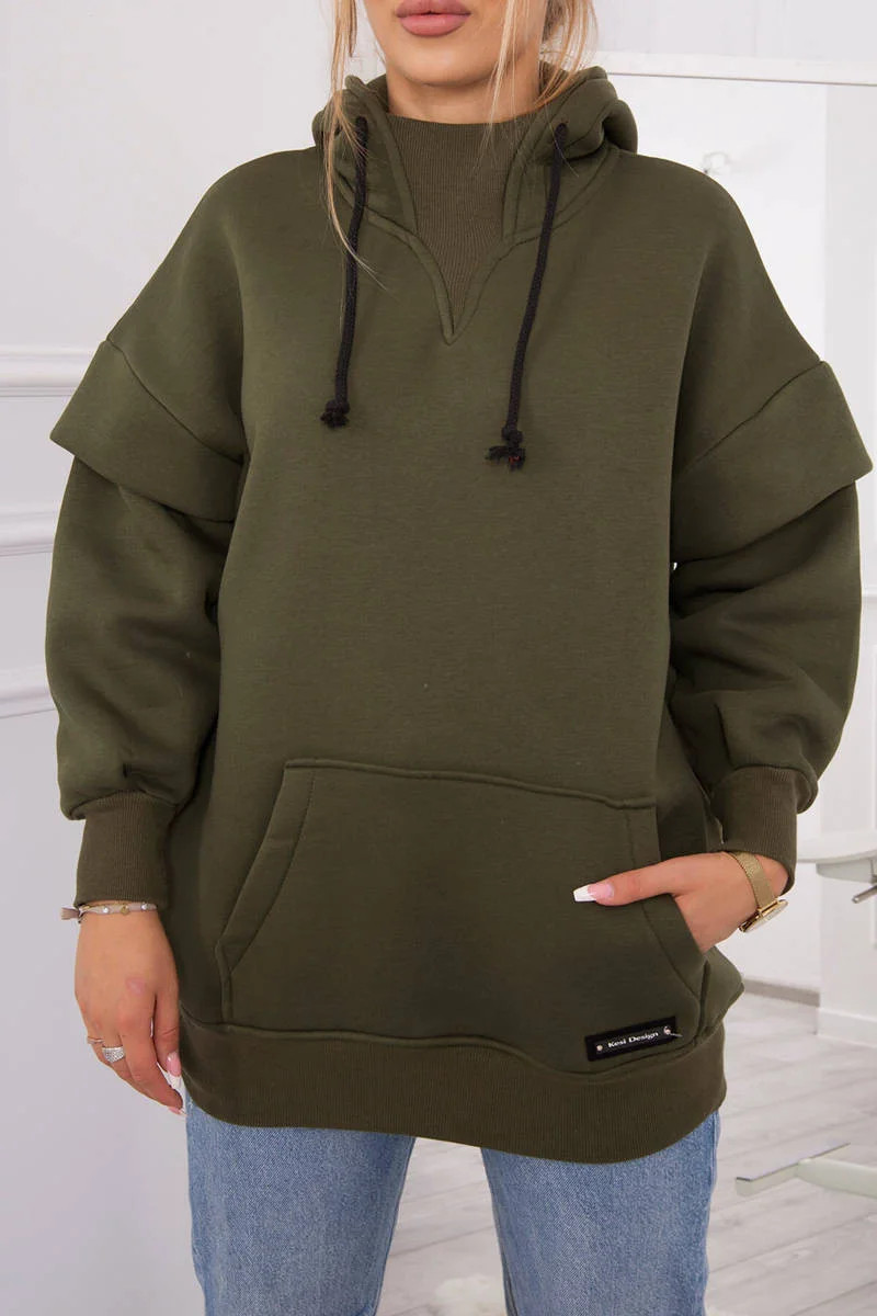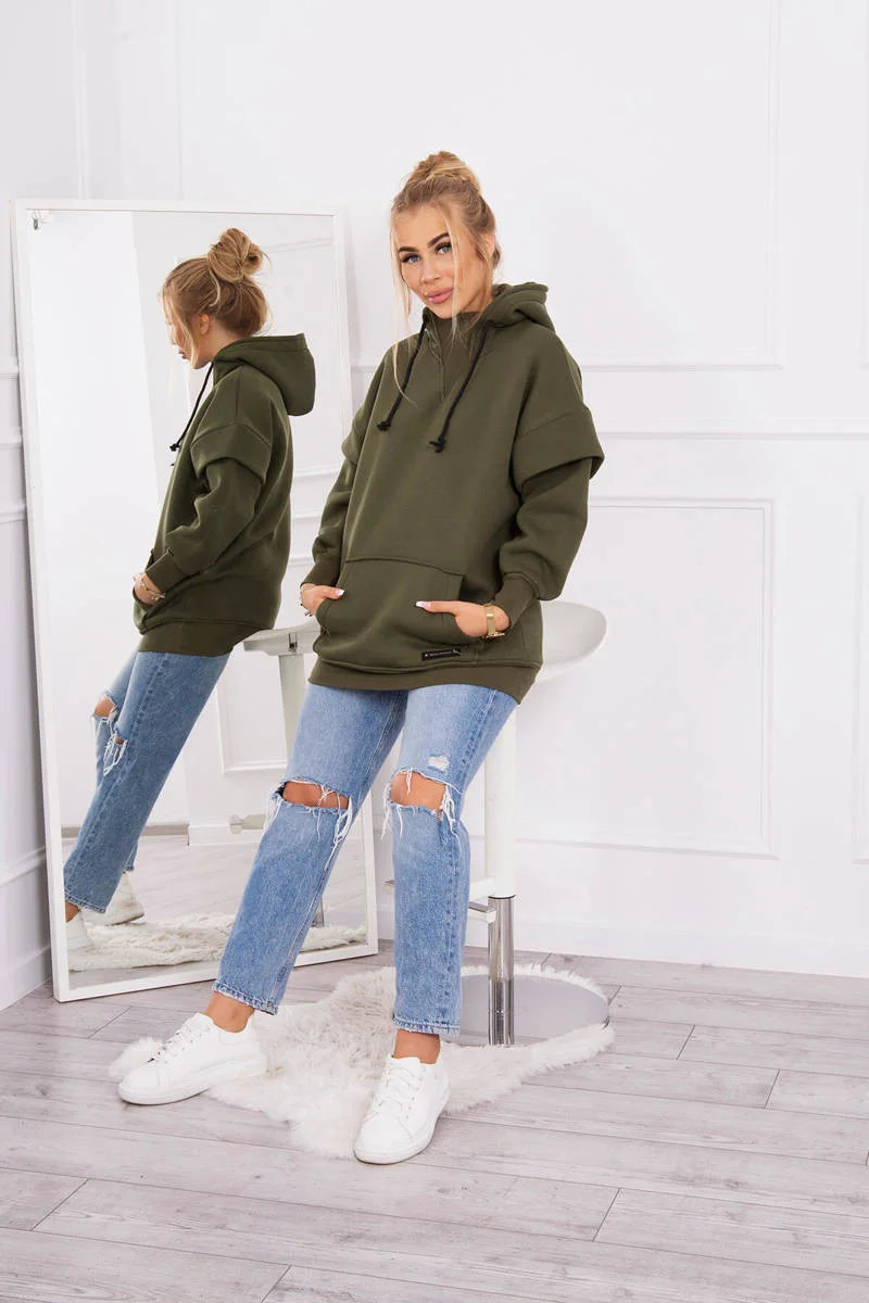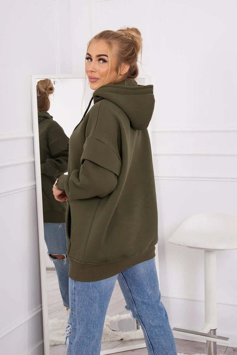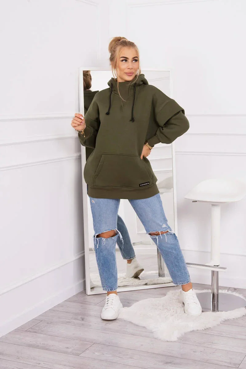 Představujeme vám zateplenou mikinu. Mikina má kapuci a kapsu na přední straně. Mikina je vyrobena ze zatepleného materiálu. Velikost je univerzální a vyhovuje dámám, které nosí velikost S, M nebo L.