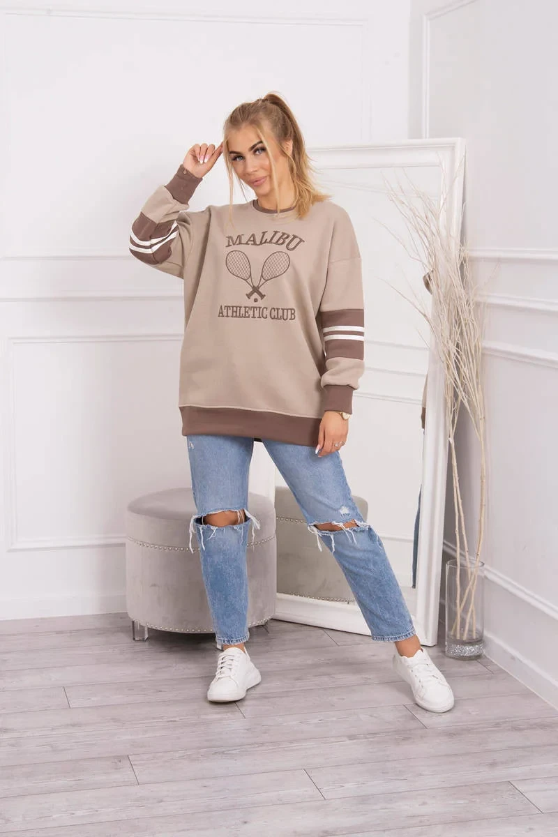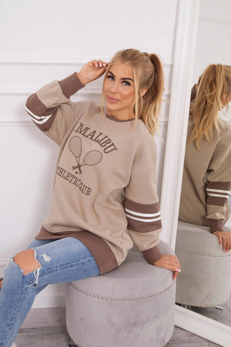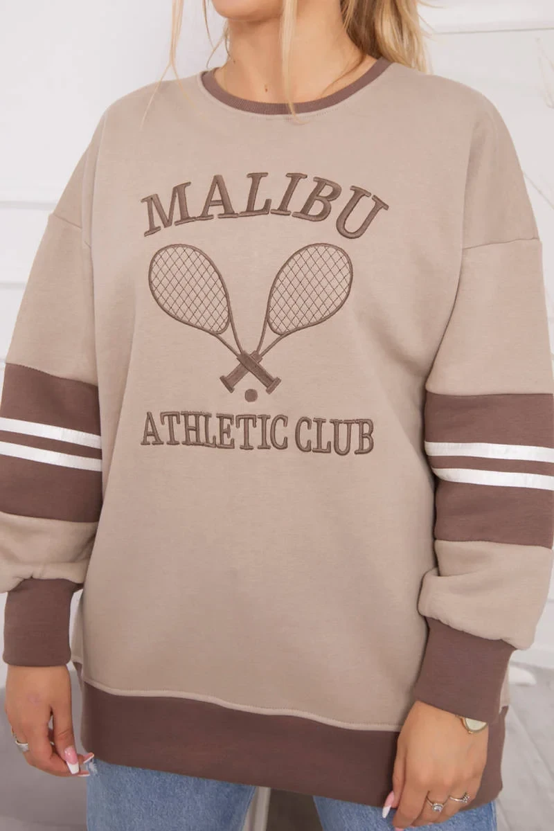 Představujeme vám zateplenou mikinu. Mikina má nápis Malibu. Mikina je vyrobena ze zatepleného materiálu. Velikost je univerzální a vyhovuje dámám, které nosí velikost S, M nebo L.