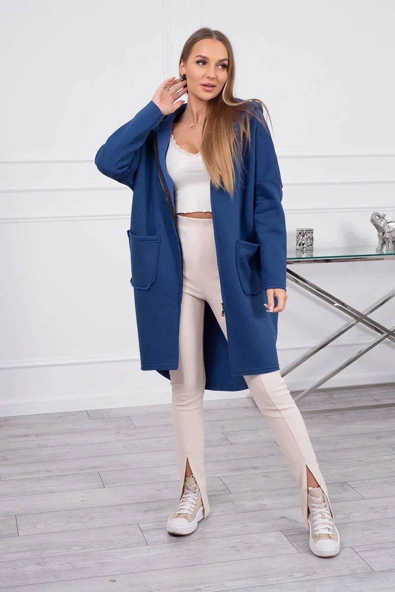 Zateplená mikina na zip s prodlouženým zadním model 18747786 džínovina - K-Fashion