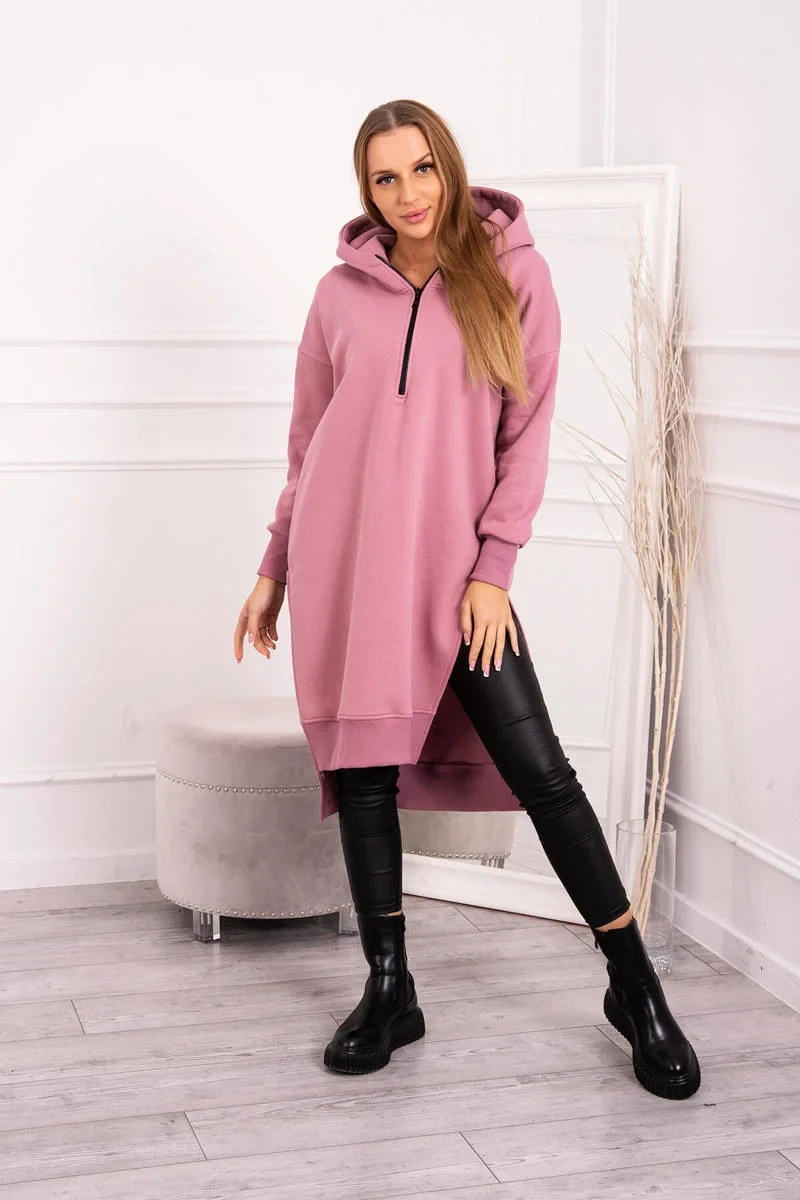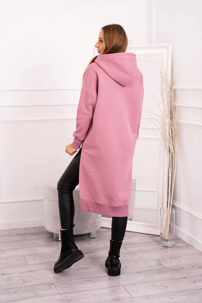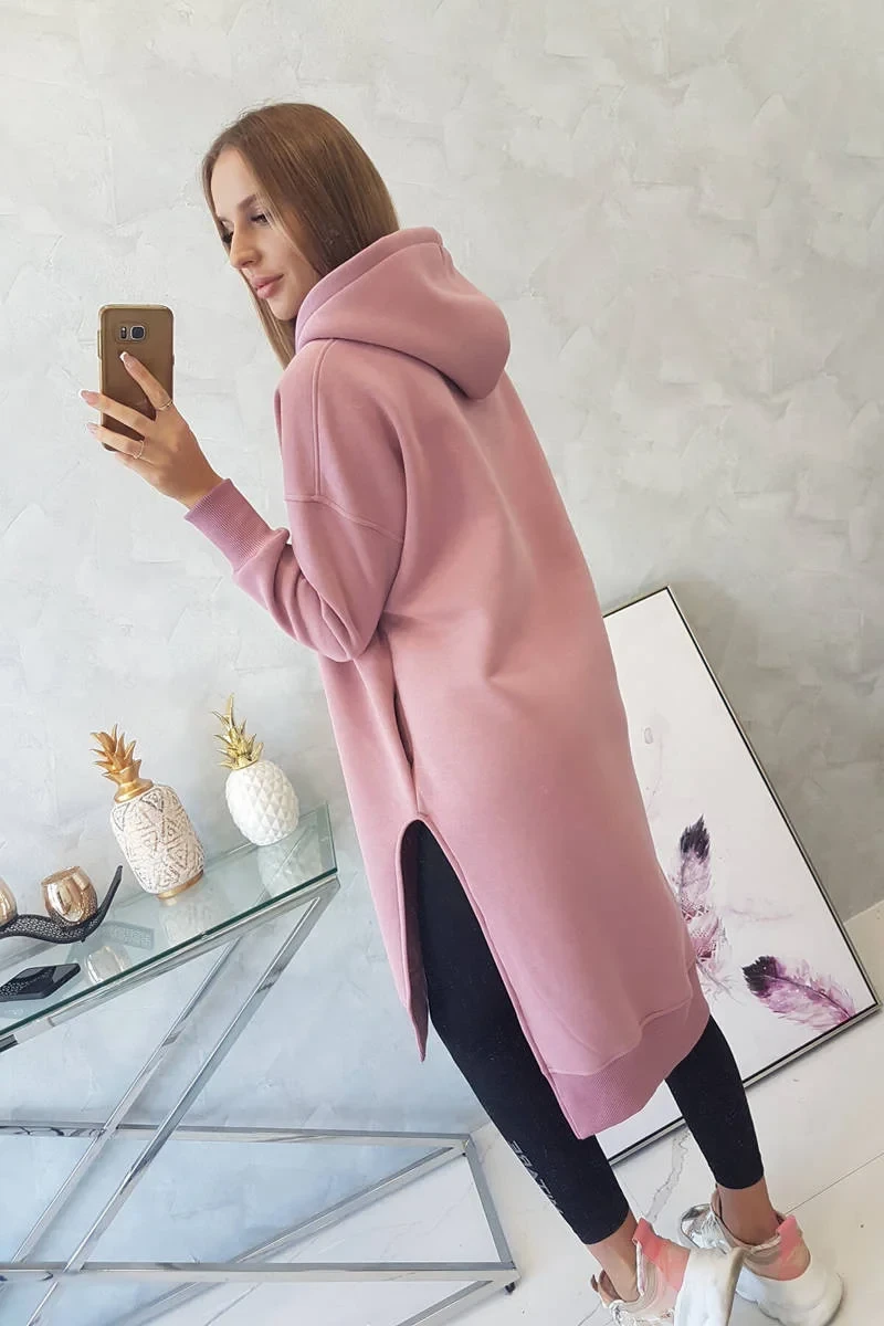 Zateplená mikina s bočními rozparky tmavě růžová