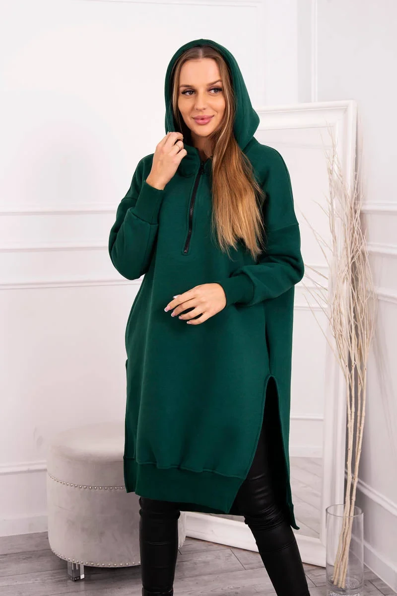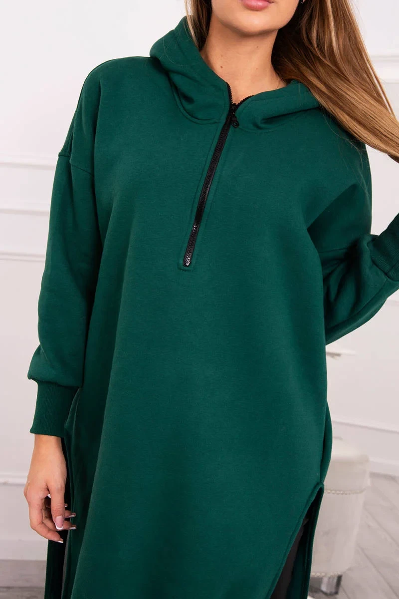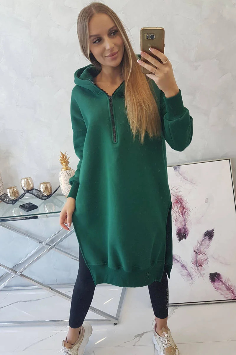 Zateplená mikina s bočními rozparky tmavě zelená