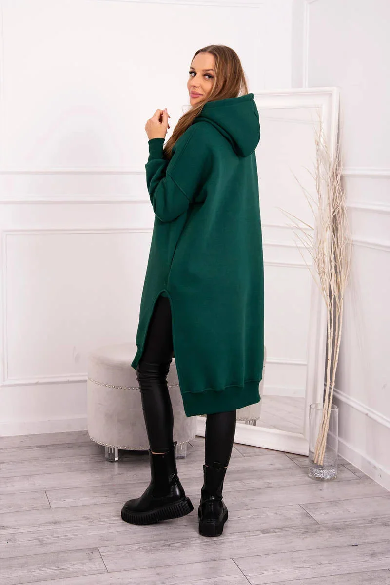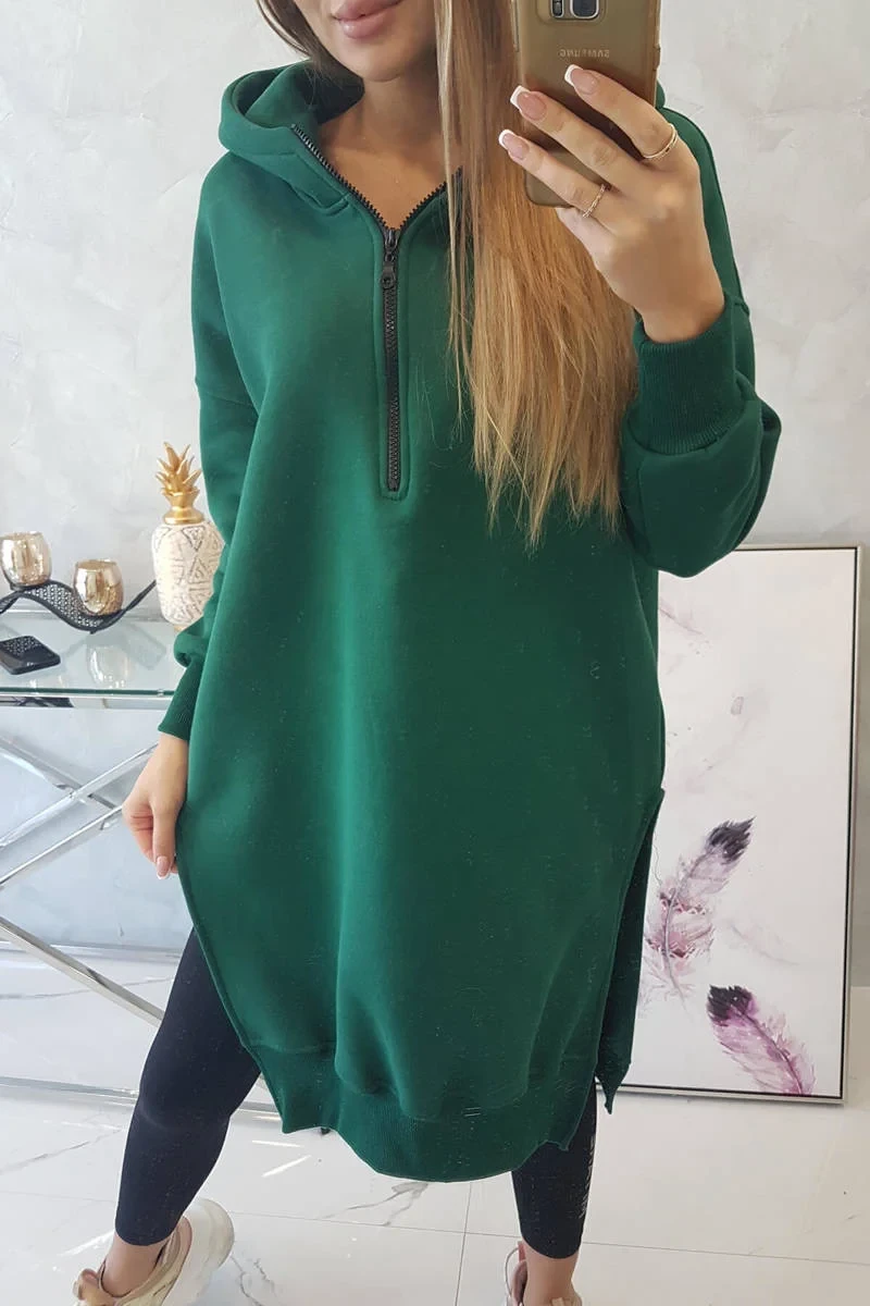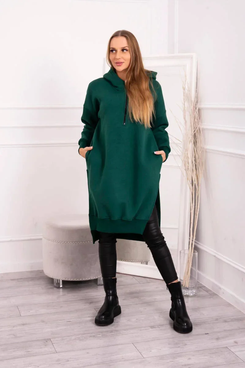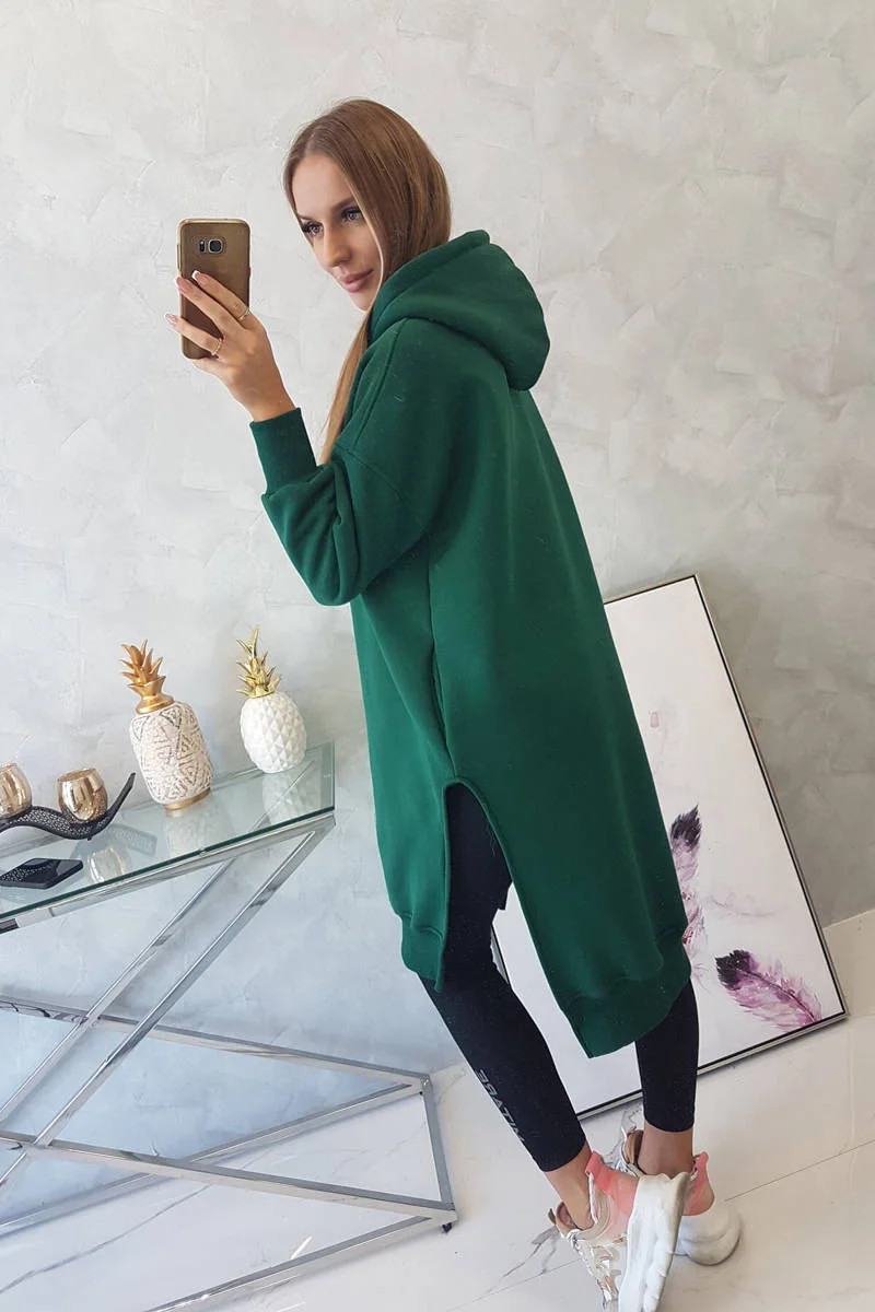 Zateplená mikina s bočními rozparky tmavě zelená