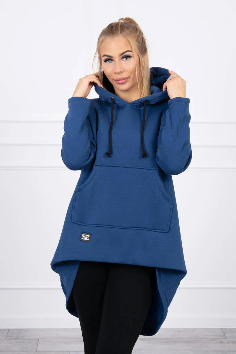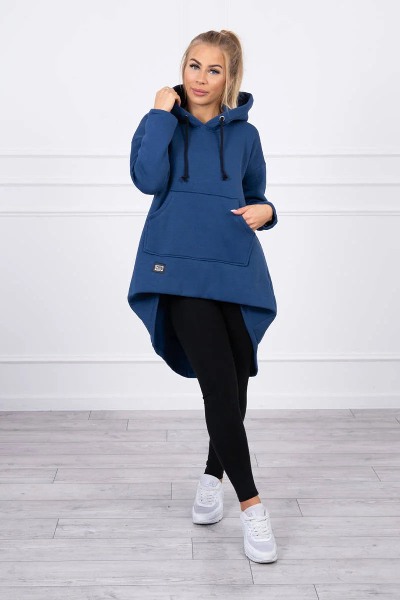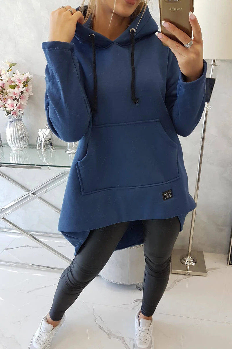Zateplená mikina s dlouhými zády a kapucí, tmavě modrá