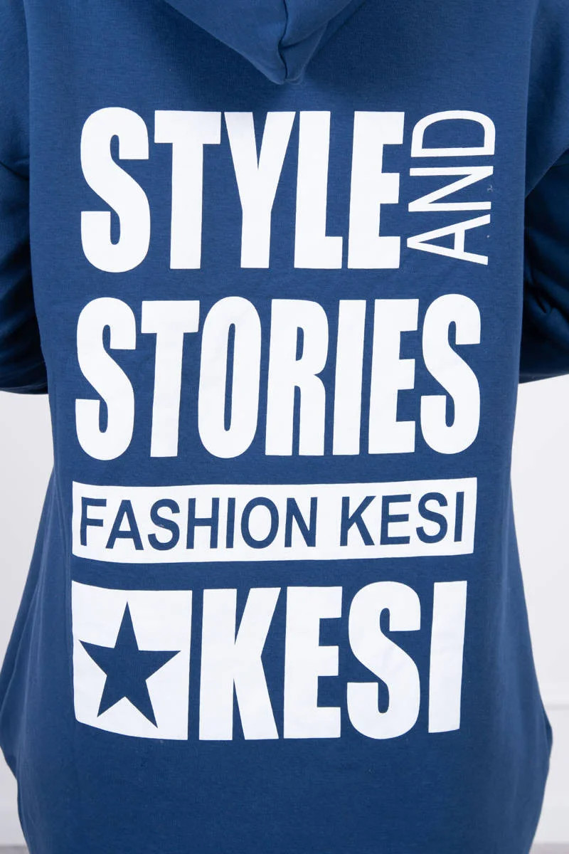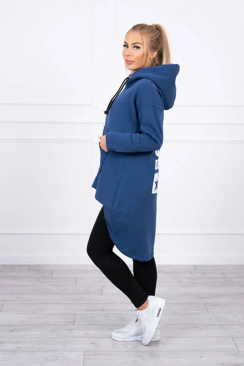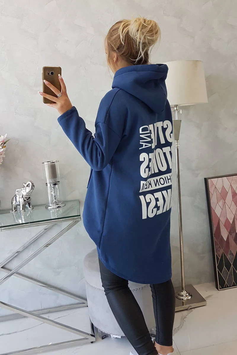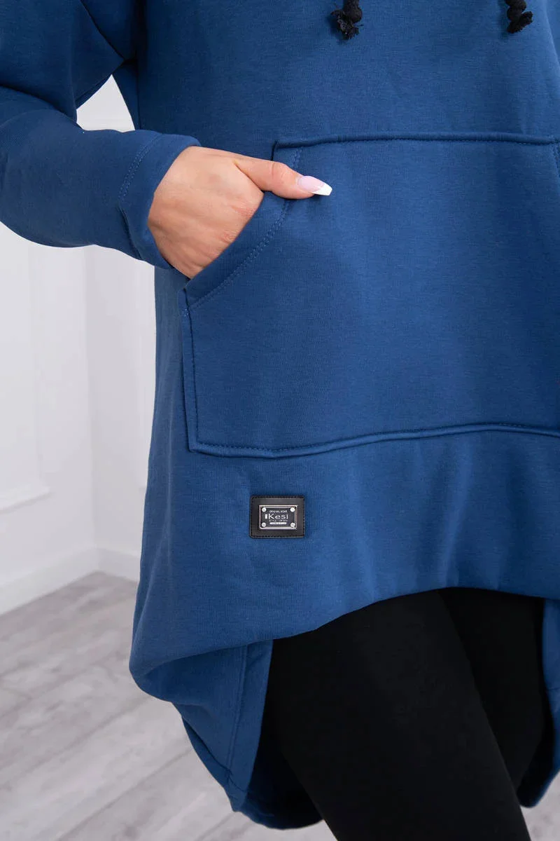 Zateplená mikina s dlouhými zády a kapucí, tmavě modrá