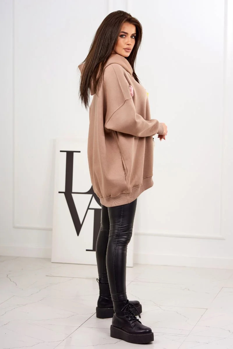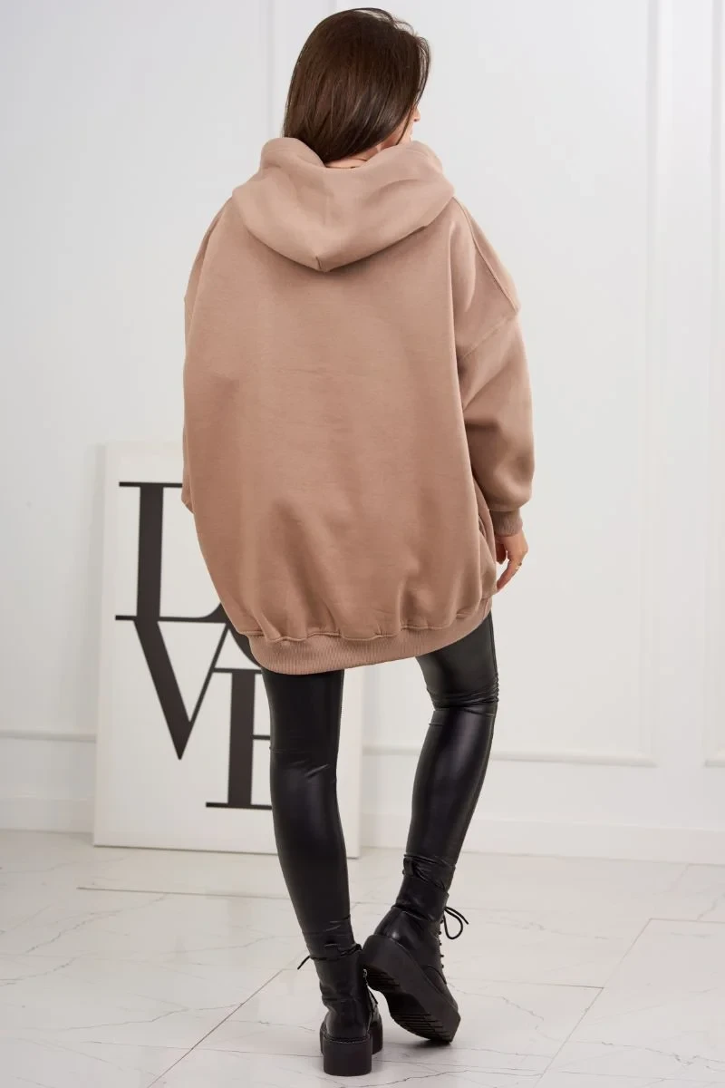 Zateplená mikina s model 19047868 motivem tmavě béžová - K-Fashion