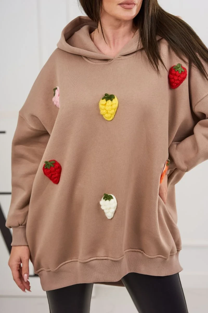 Objevte kouzlo a pohodlí v jednom – naše zateplená mikina s motivem jahod je dokonalou kombinací stylu a funkčnosti. Mikina zaujme nejen originálním jahodovým vzorem, který jí dodává kouzlo, ale také zahřeje v chladnějších dnech. Je vybavena praktickou kapucí a kapsami a je dokonalým řešením pro lidi, kteří oceňují pohodlí a módní vzhled. Slaďte ho se svými oblíbenými džínami nebo sukní a vytvořte jedinečný, okouzlující outfit pro každou příležitost. Zateplená mikina s motivem jahod není jen oblečení, je vyjádřením vašeho stylu a radosti v každodenním životě. Velikost je univerzální a bude vhodná pro ženy, které nosí velikost S, M nebo L.