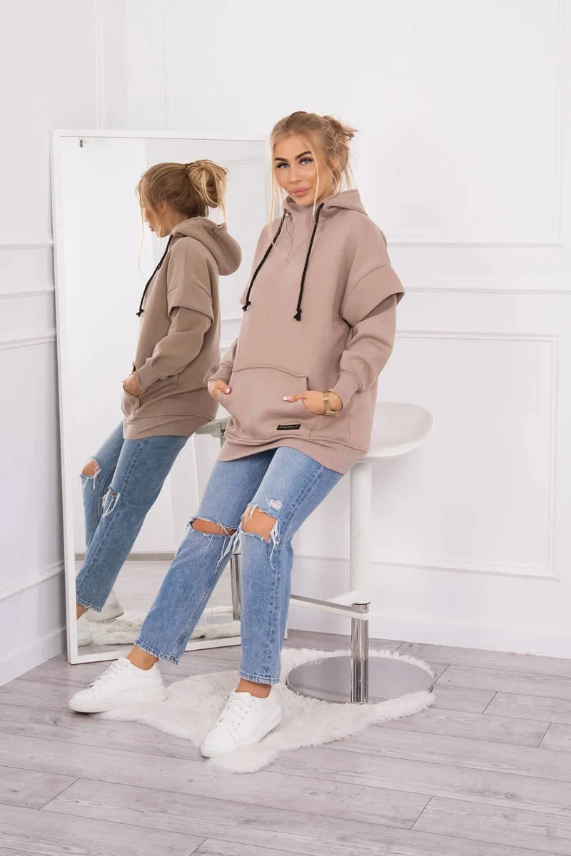 Představujeme vám zateplenou mikinu. Mikina má kapuci a kapsu na přední straně. Mikina je vyrobena ze zatepleného materiálu. Velikost je univerzální a vyhovuje dámám, které nosí velikost S, M nebo L.