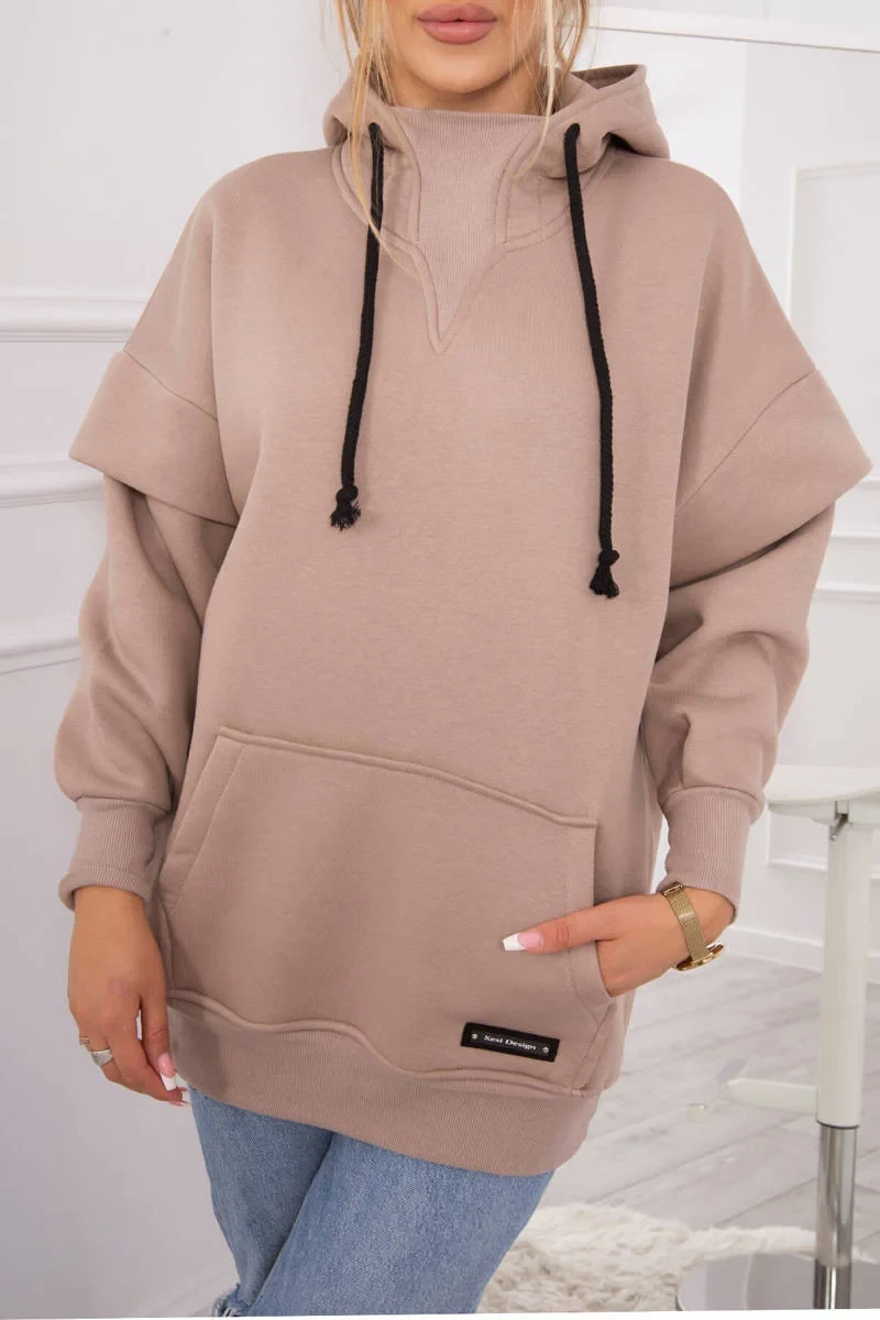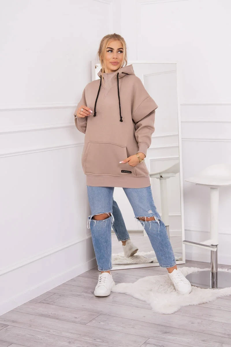 Zateplená mikina s polovičním zipem tmavě béžová