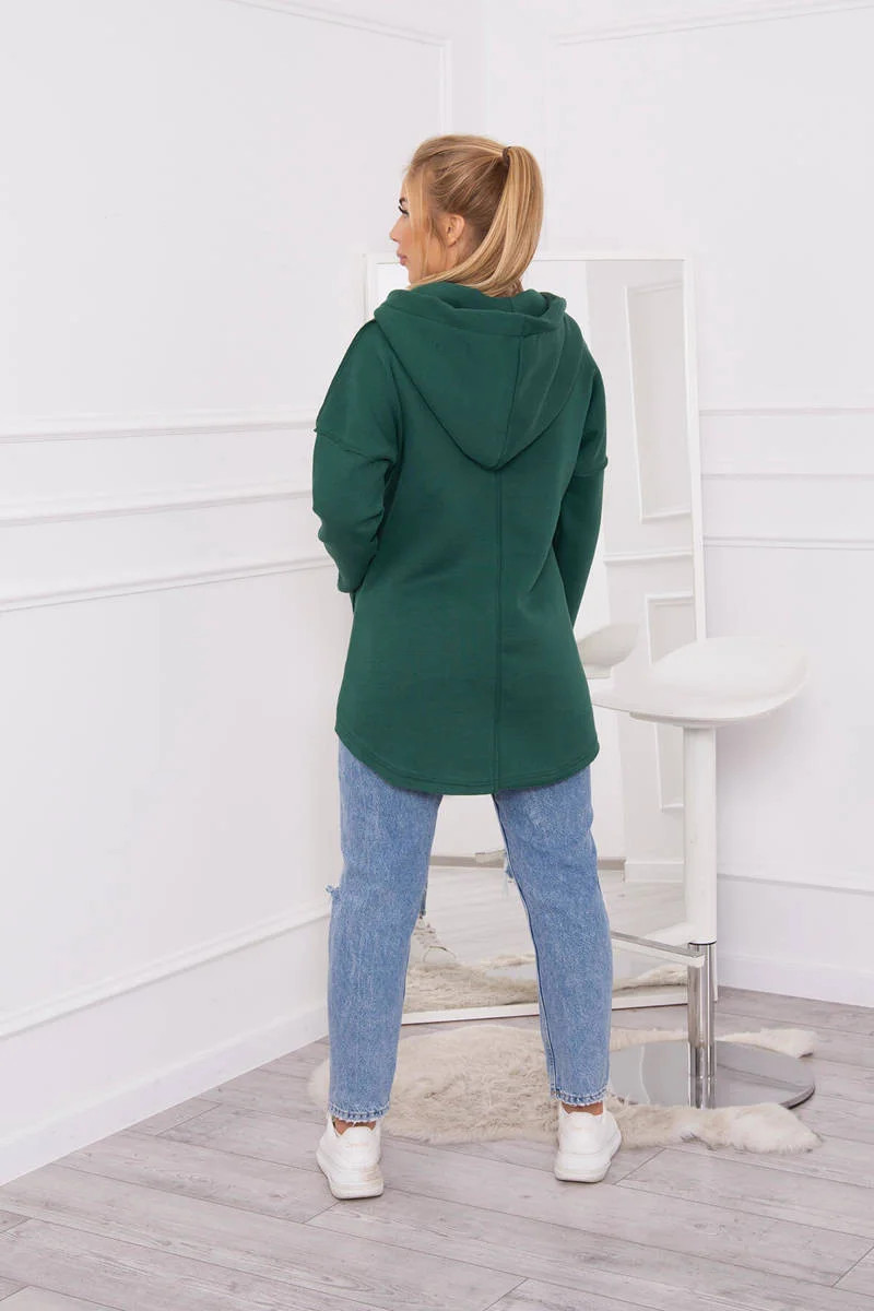 Představujeme vám zateplenou mikinu. Mikina má kapuci, delší zadní díl a kapsu. Mikina je vyrobena ze zatepleného materiálu. Velikost je univerzální a vyhovuje dámám, které nosí velikost S, M nebo L.