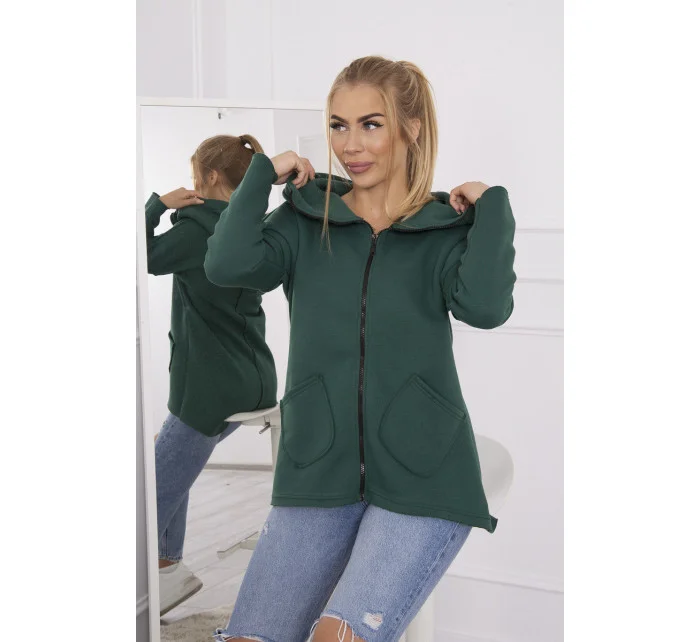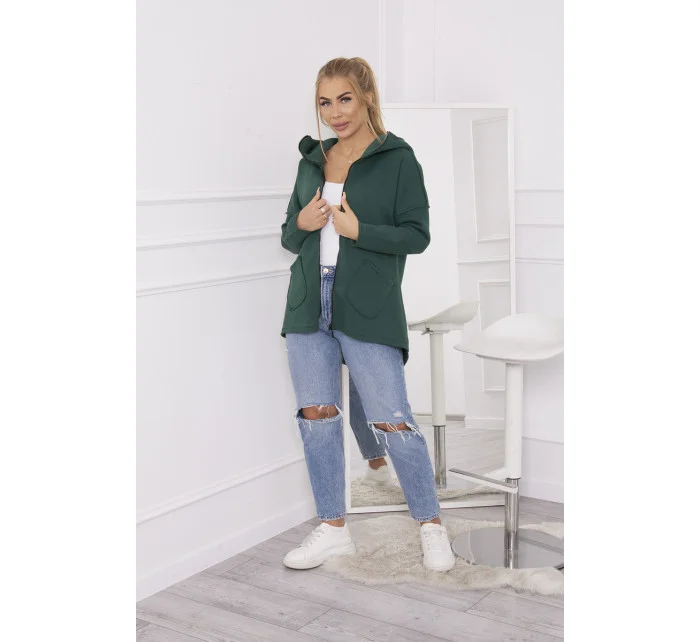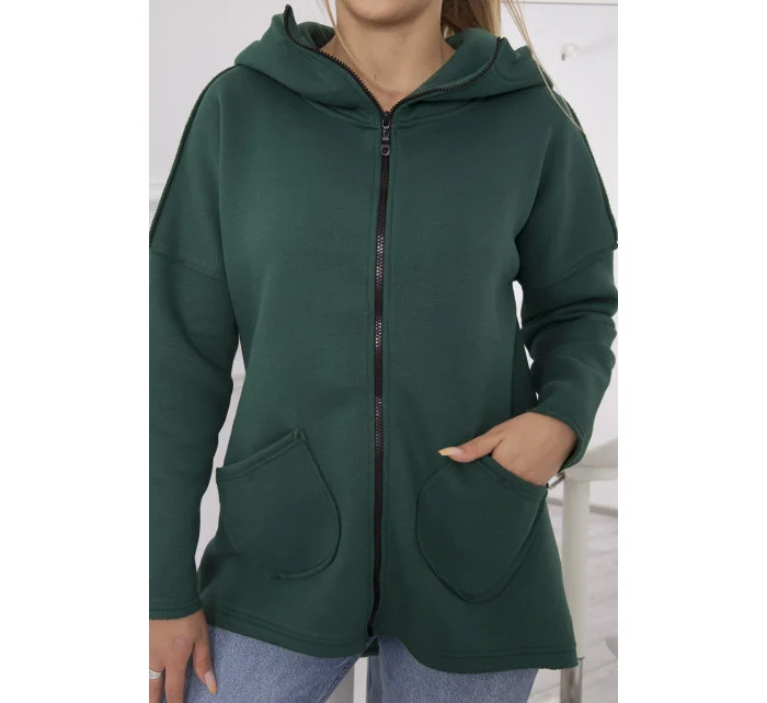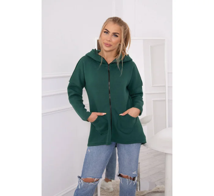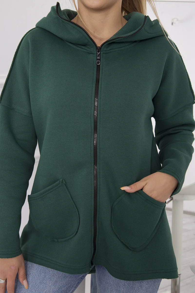 Zateplená mikina s prodlouženými zády a kapsami tmavě růžová