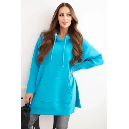 Zateplená mikina s rozparky na bocích tyrkysová