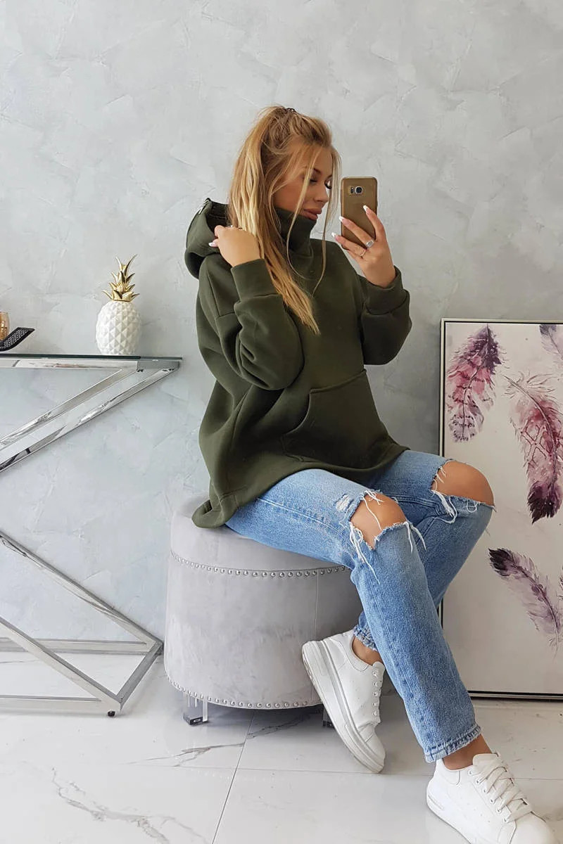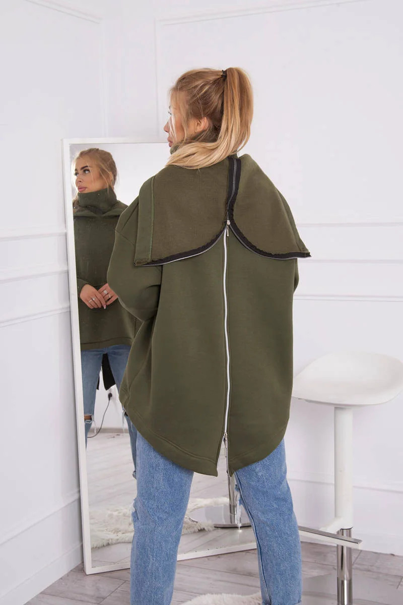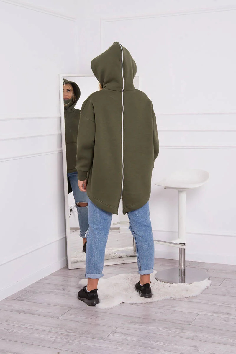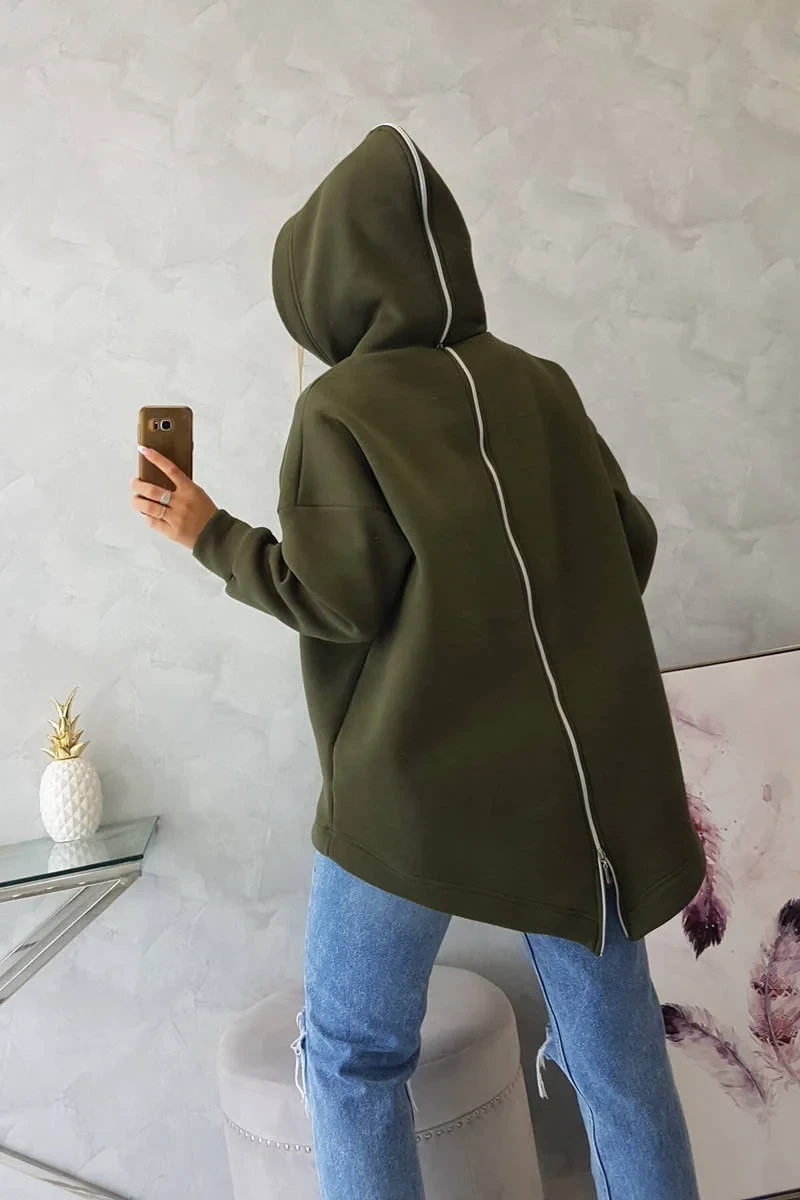 Představujeme vám zateplenou mikinu. Mikina má kapuci a delší zadní díl. Mikina má na zádech všitý zip. Mikina je vyrobena z vysoce kvalitního zatepleného materiálu. Velikost je univerzální a vyhovuje dámám, které nosí velikost S, M nebo L.