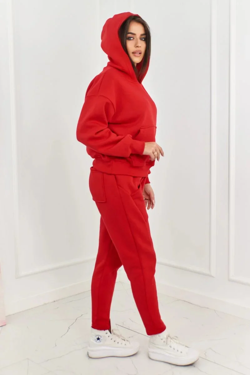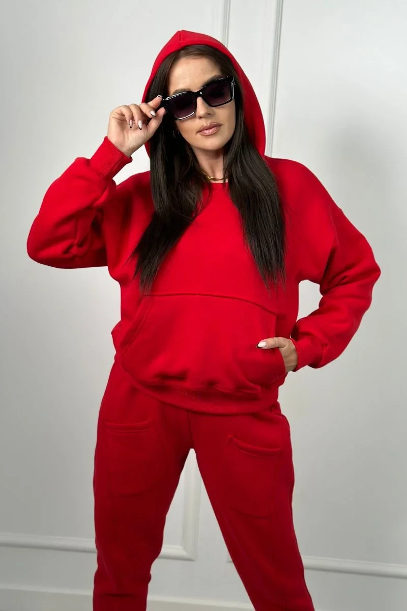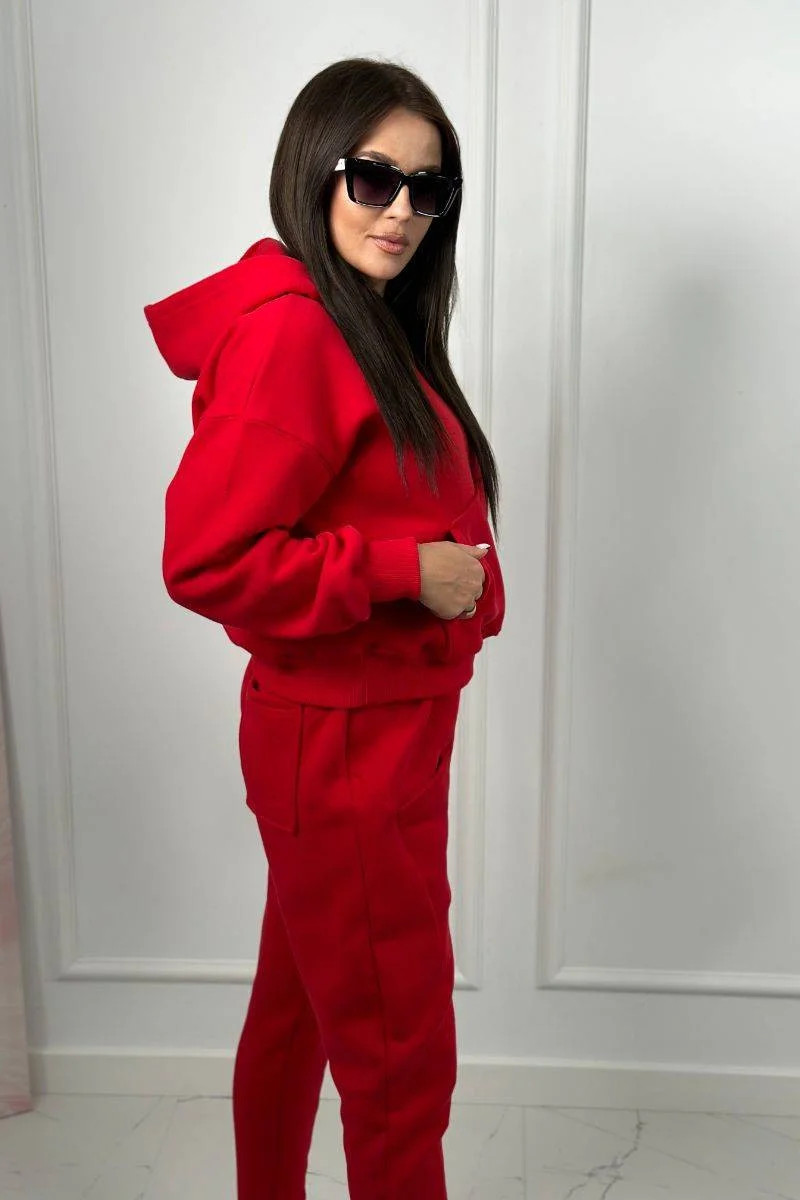 Turecký komplet skládající se z mikiny a kalhot s kapsami je kombinací stylu, pohodlí a funkčnosti. Mikina je nejen módní, ale také praktická v různých situacích. Kapuce poskytuje dodatečnou ochranu před větrem a deštěm a dodává charakter celému setu. Za pozornost stojí i detaily, jako je nastavitelná šňůrka v kapuci a elastické manžety na rukávech a spodní části mikiny, které zajistí dokonalé padnutí. Kalhoty s kapsami jsou skvělým doplňkem tohoto setu. Praktické jsou boční kapsy, do kterých můžete uložit drobnosti, jako jsou klíče nebo telefon. Elastický pas s úpravou zajišťuje pohodlí a padnutí. Tento turecký set je perfektním řešením pro různé příležitosti. Využijete ji při outdoorových aktivitách, v posilovně nebo jednoduše při volném čase. Nepochybně kombinuje estetiku, pohodlí a praktičnost a vytváří ucelený vzhled pro lidi, kteří si cení módy i funkčnosti v oblečení. Sada je vyrobena ze zatepleného materiálu. Velikost je univerzální a bude vhodná pro dámy velikosti S, M nebo L.