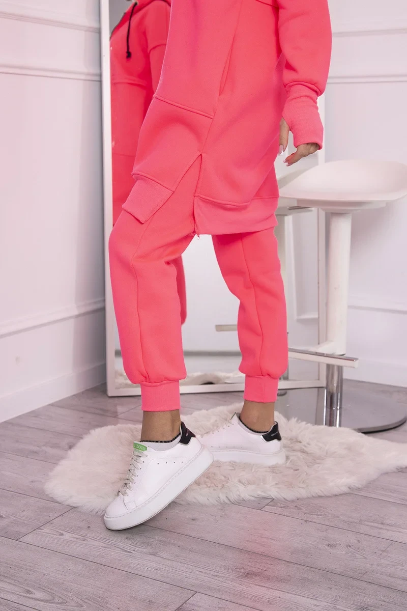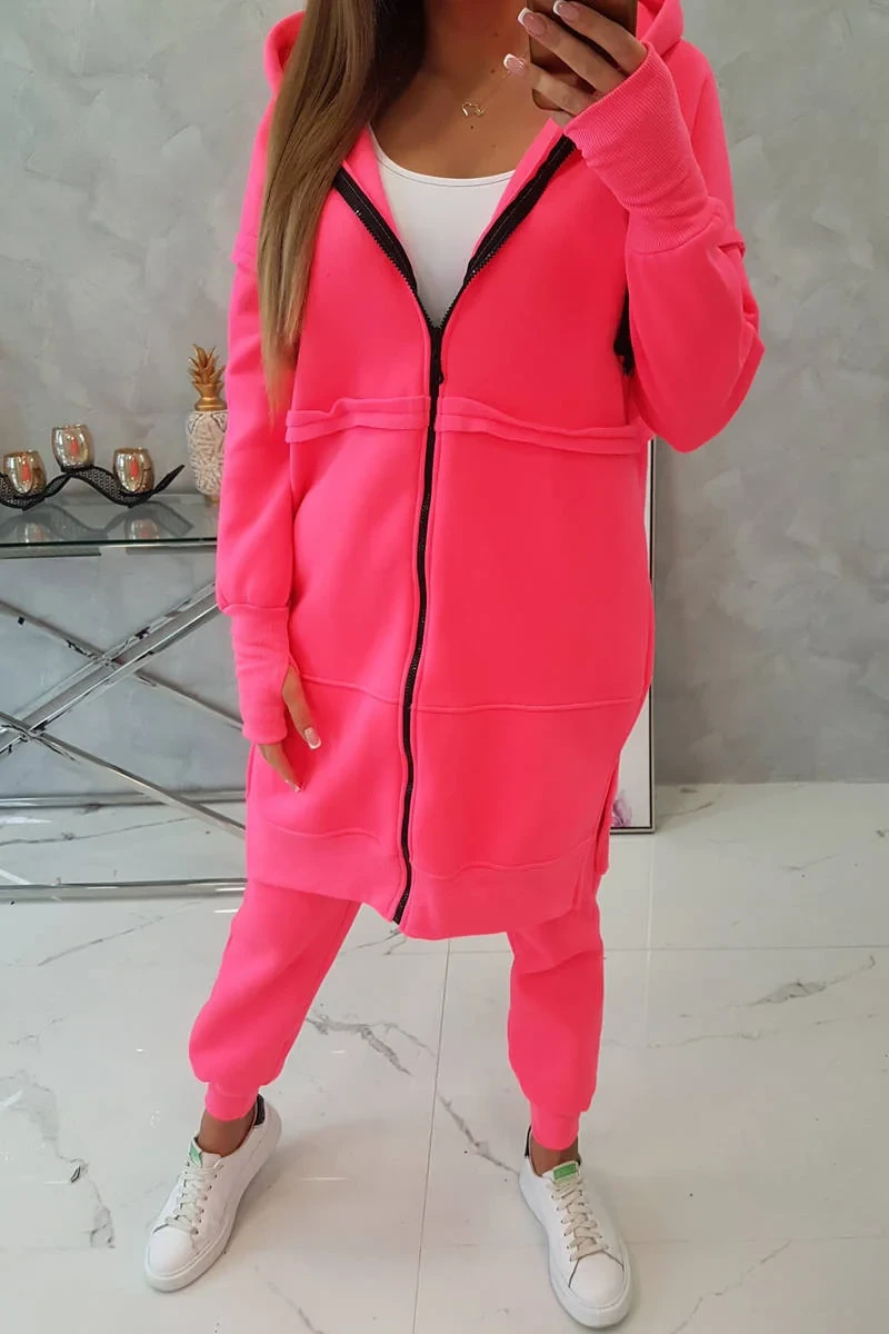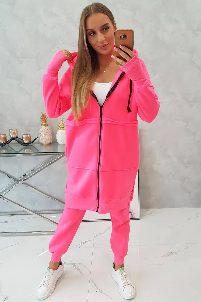 Zateplená sada s dlouhou mikinou růžová neonová