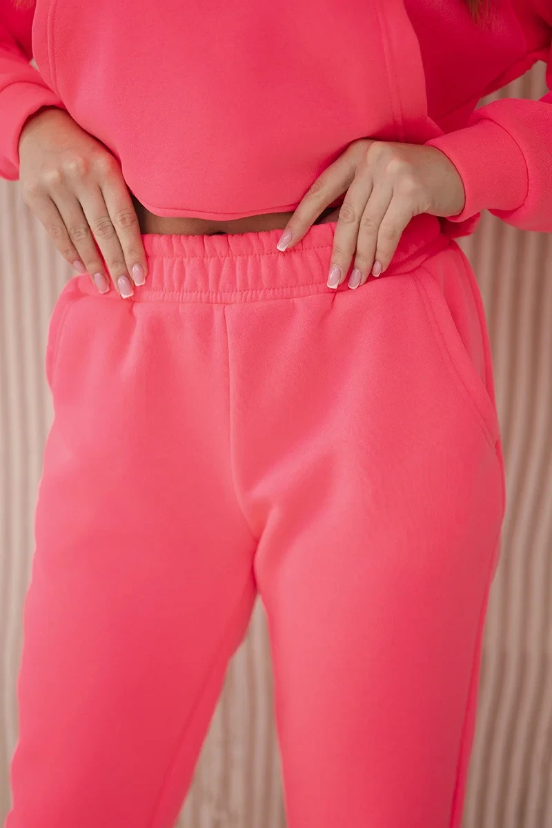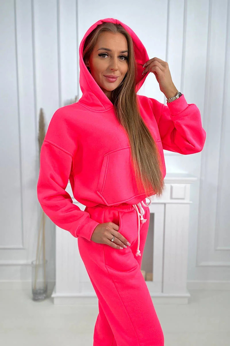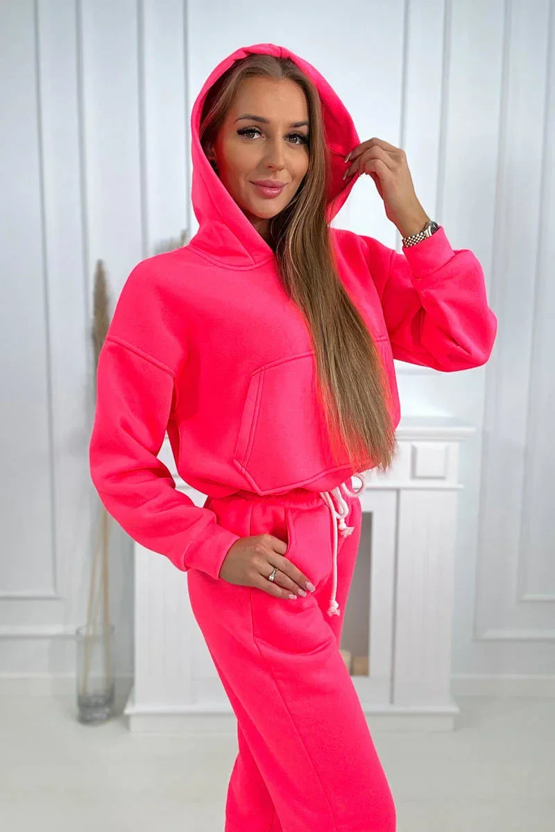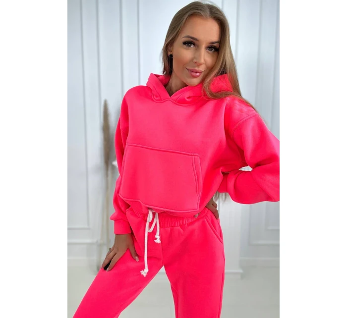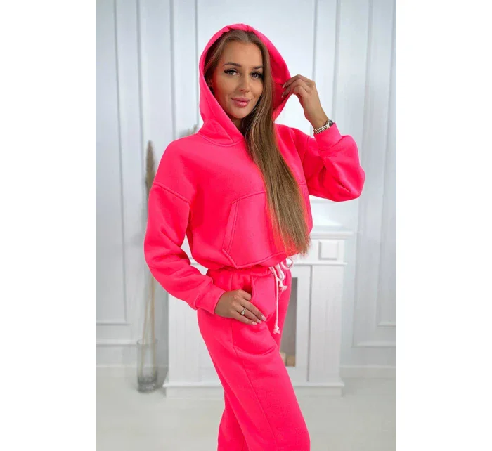 Zateplená souprava s mikinou vázanou ve spodní části v růžové neonové barvě