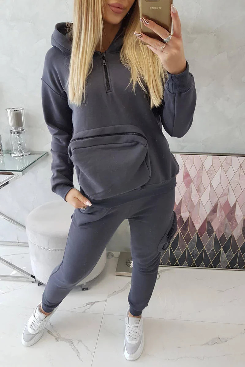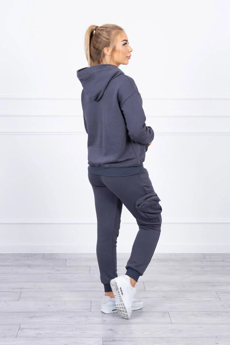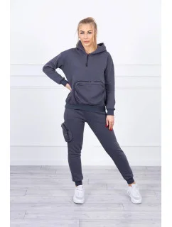 Zateplená souprava s ozdobnou kapsou grafitová melanž