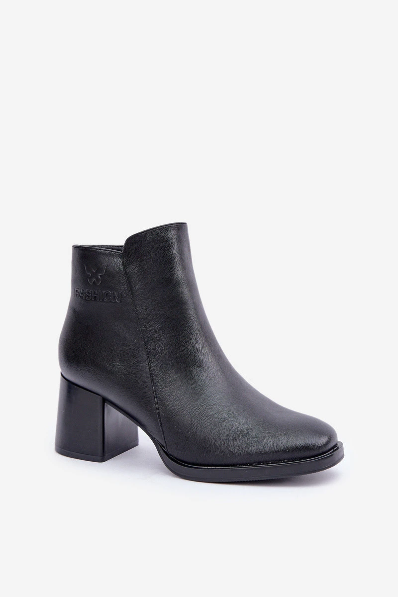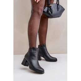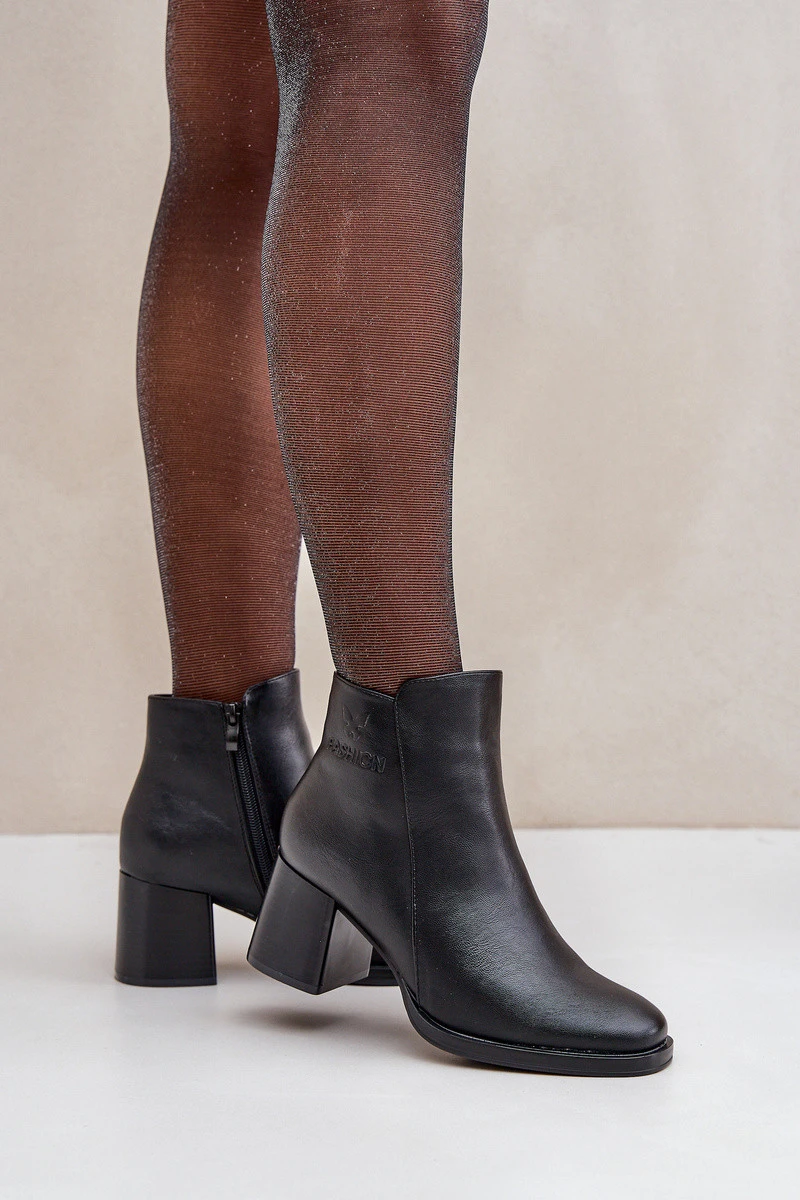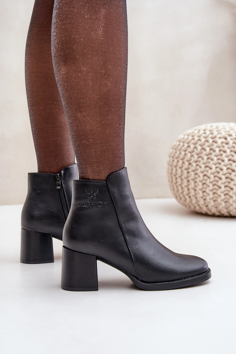Stylové dámské boty vyrobené z eko kůže, usazené na pohodlném sloupkovém podpatku. Model se vyznačuje zaoblenými špičkami a praktickým zapínáním na zip, což usnadňuje obouvání. Zateplený interiér zajistí teplo v chladnějších dnech. Svršek zdobený jemným ražením s nápisem "Fashion" dodává moderní a módní charakter. Ideální pro každodenní i elegantní stylizace! Při výběru velikosti se řiďte tabulkou velikostí.