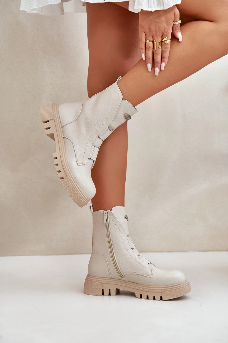 Zateplené boty pro ženy na zip z eko kůže světle béžové model 21670042 - Boto