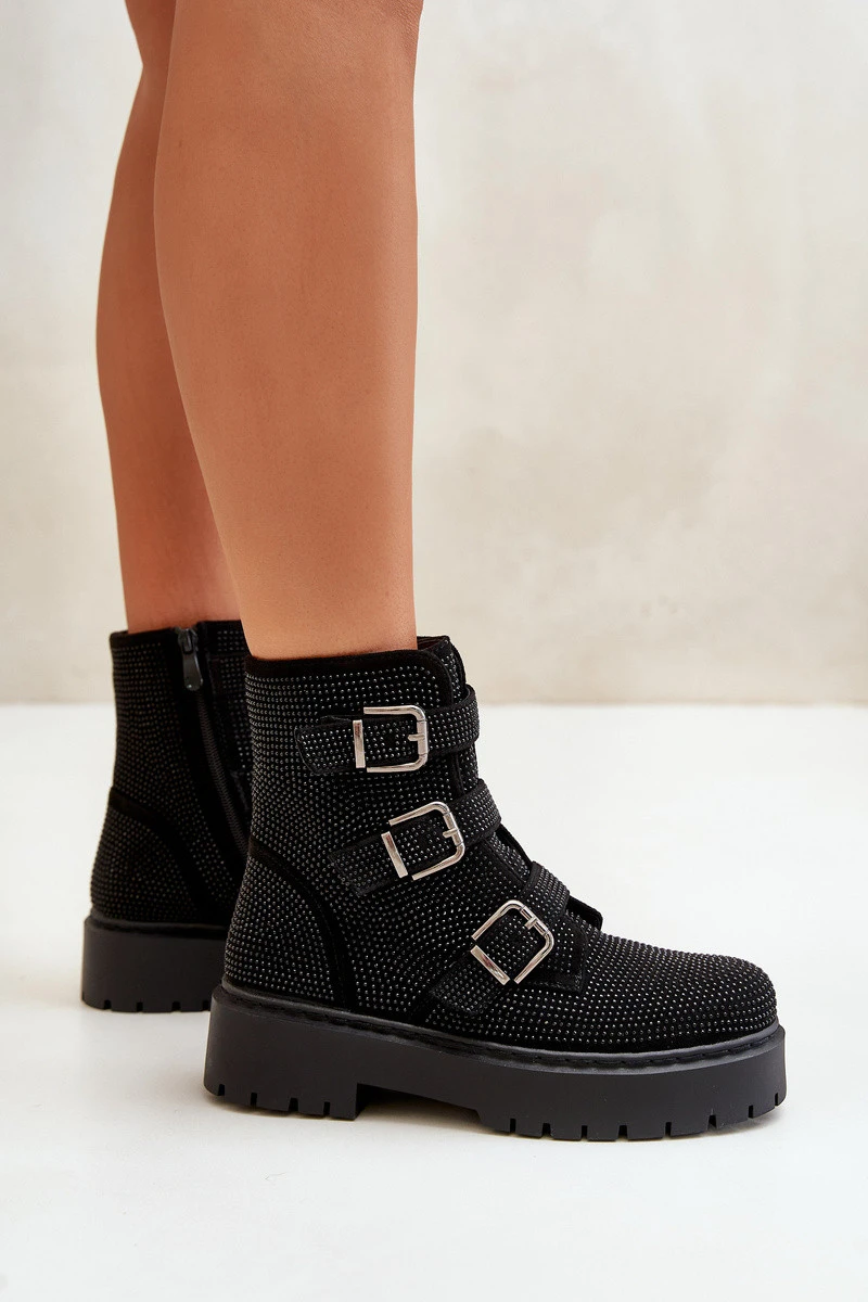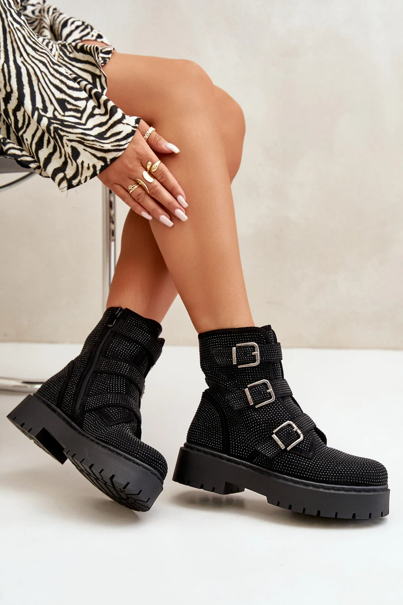 Stylové dámské boty jsou nezbytným prvkem podzimní a zimní garderoby. Tento model se vyznačuje zdobenou svrškem a regulovatelnými pásky s přezkami. Zapínání na zip usnadňuje obouvání a svlékání obuvi. Vnitřek je zateplený obuvnickou vlnou. Skvěle se hodí do různých stylizací! Při výběru velikosti se řiďte tabulkou velikostí.