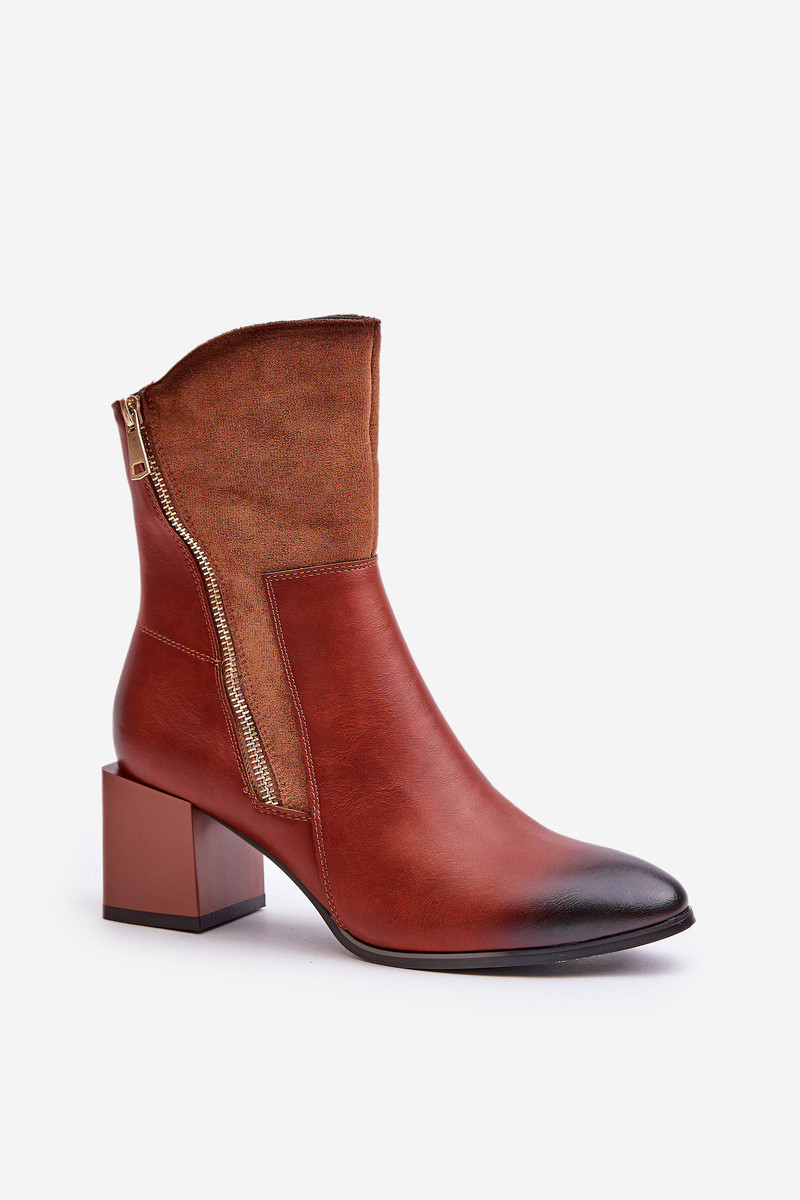 Zateplené dámské botky na podpatku hnědé Relabina