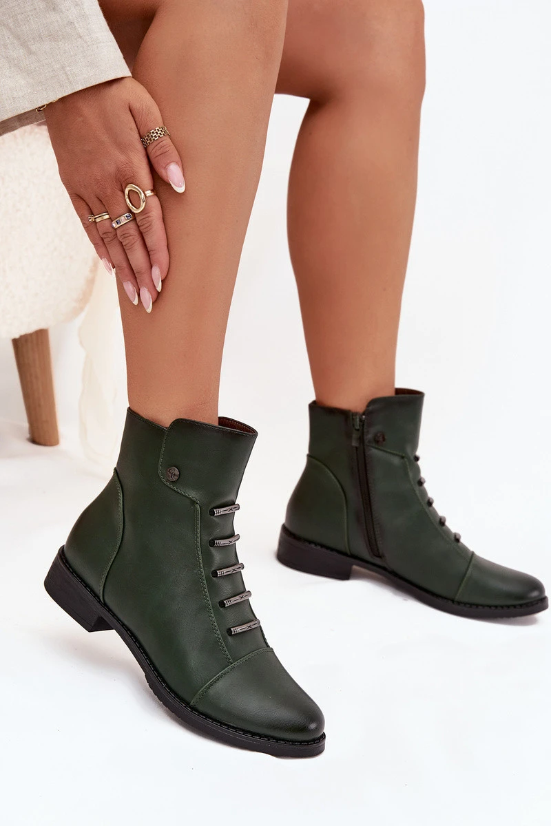 Zateplené dámské boty na plochém podpatku zelené Labise