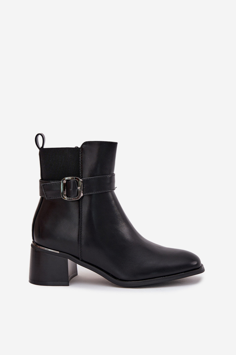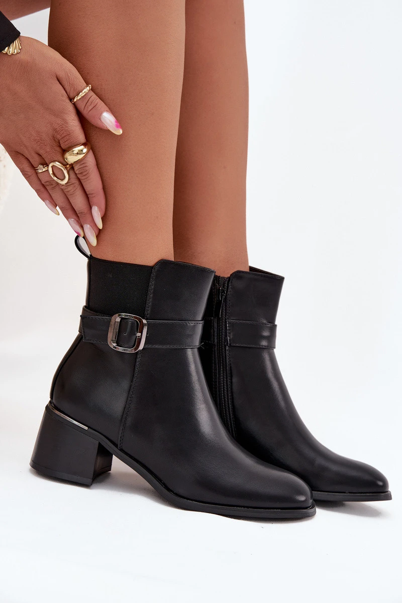 Zateplené dámské boty na podpatku s páskem a přezkou černé Sylira