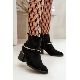 Přidání recenze k Zateplené dámské boty na podpatku s řetízkem eko semišové černé model 21669206 - Boto