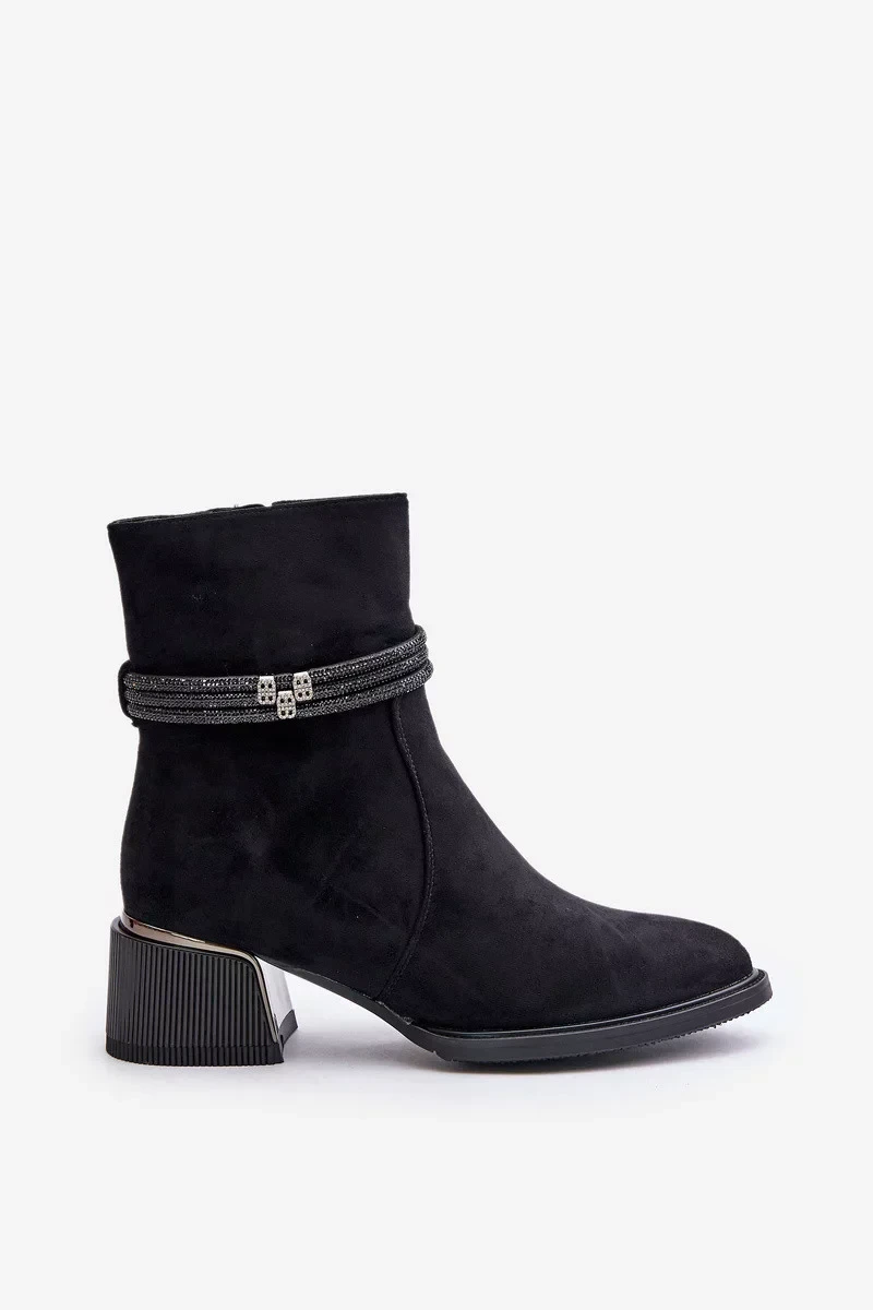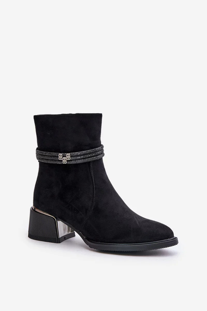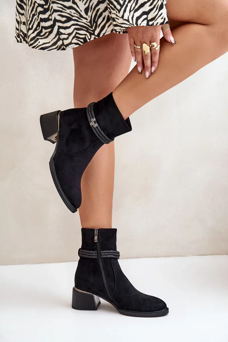 Zateplené Dámské Kotníkové Boty Na Nízkém Podpatku S Ozdobnými Pásky D&A Černé