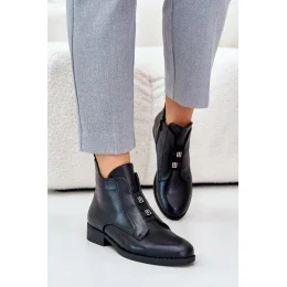 Zateplené Dámské Kotníkové Boty Na Plochém Podpatku Z Eko Kůže S.Barski Černé