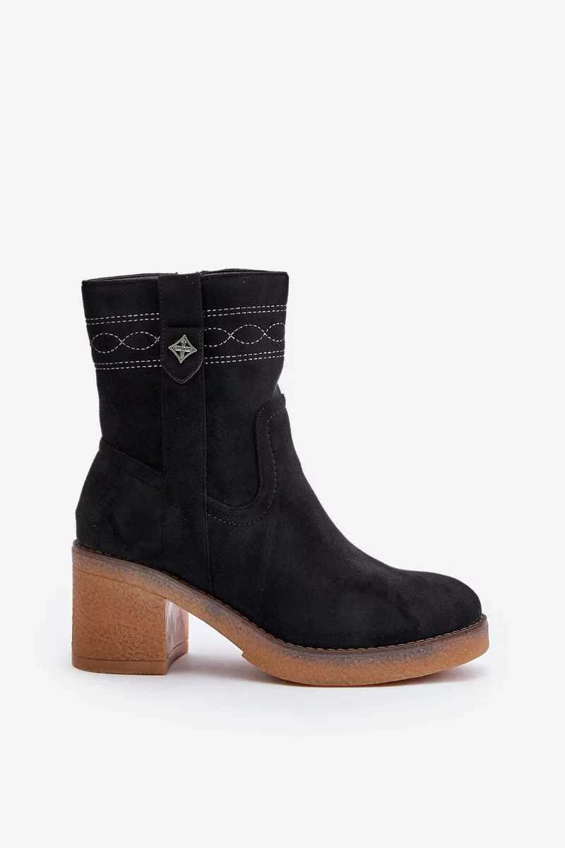 Zateplené Dámské Kotníkové Boty Na Podpatku Černé Vailia