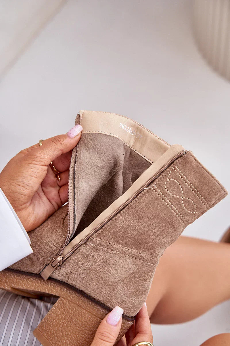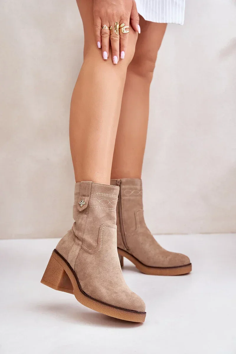 Klasické dámské kotníkové boty vyrobené z eko semiše.