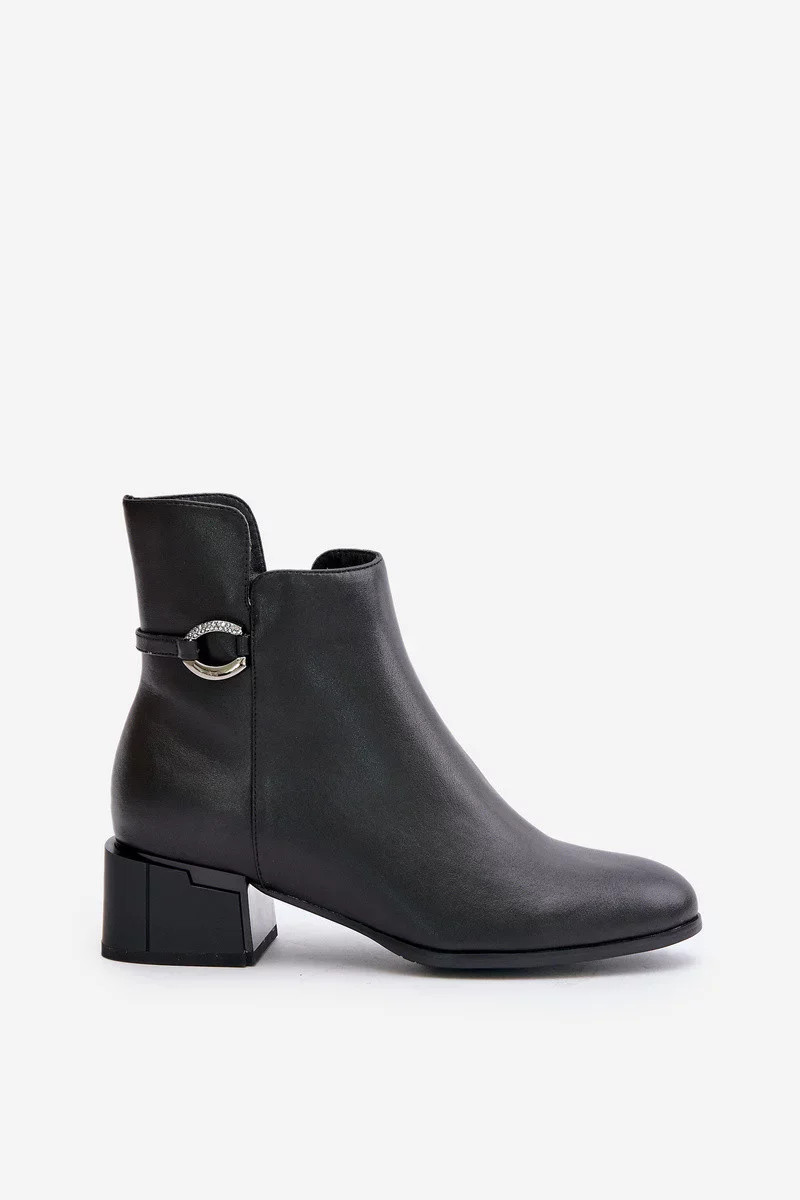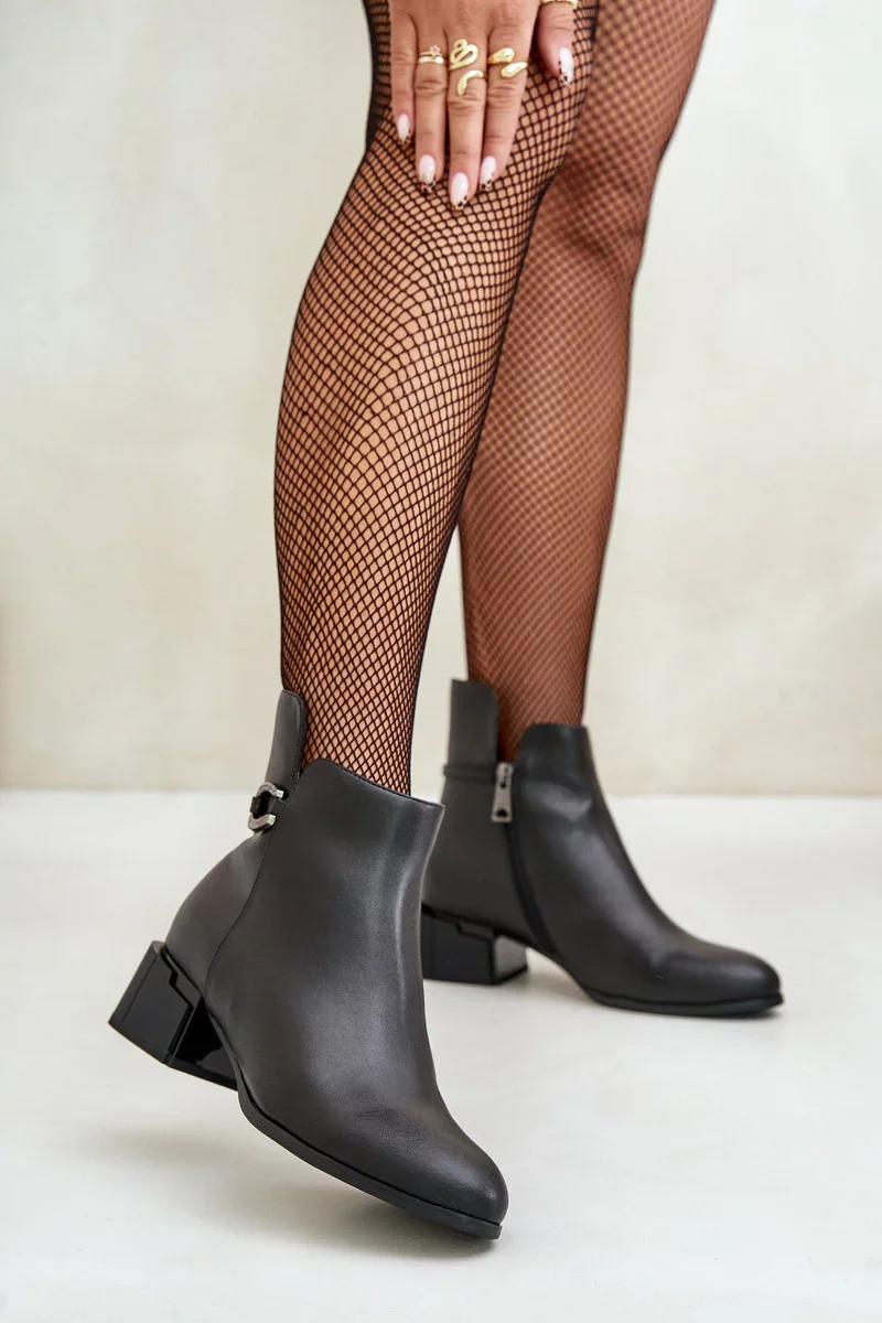 Elegantní kotníkové boty od značky Vinceza. Vyrobeno z přírodní kůže. Vnitřek zateplený příjemnou na dotek obuvnickou dekou. Zapínání na zámek umožňuje rychlé a snadné obouvání a zouvání obuvi. Svršek obohacený tenkým proužkem s ozdobou. Zaoblené špičky. Bez ohledu na příležitost, tento model dokonale doplní mnoho stylizací! Při výběru velikosti se prosím řiďte tabulkou velikostí.
