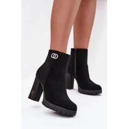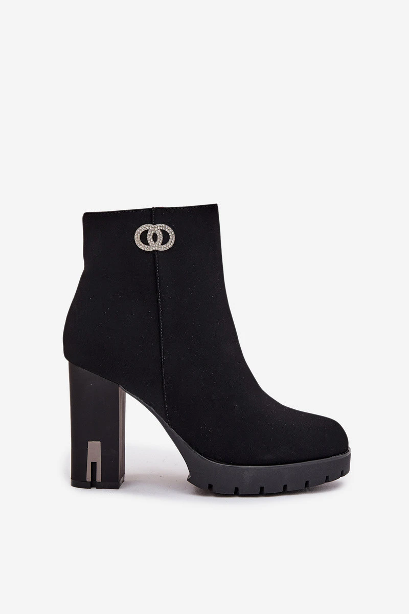 Zateplené dámské kotníkové boty na podpatku s ozdobným detailem černé Vessara
