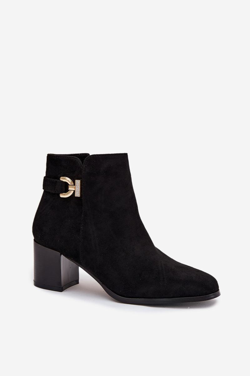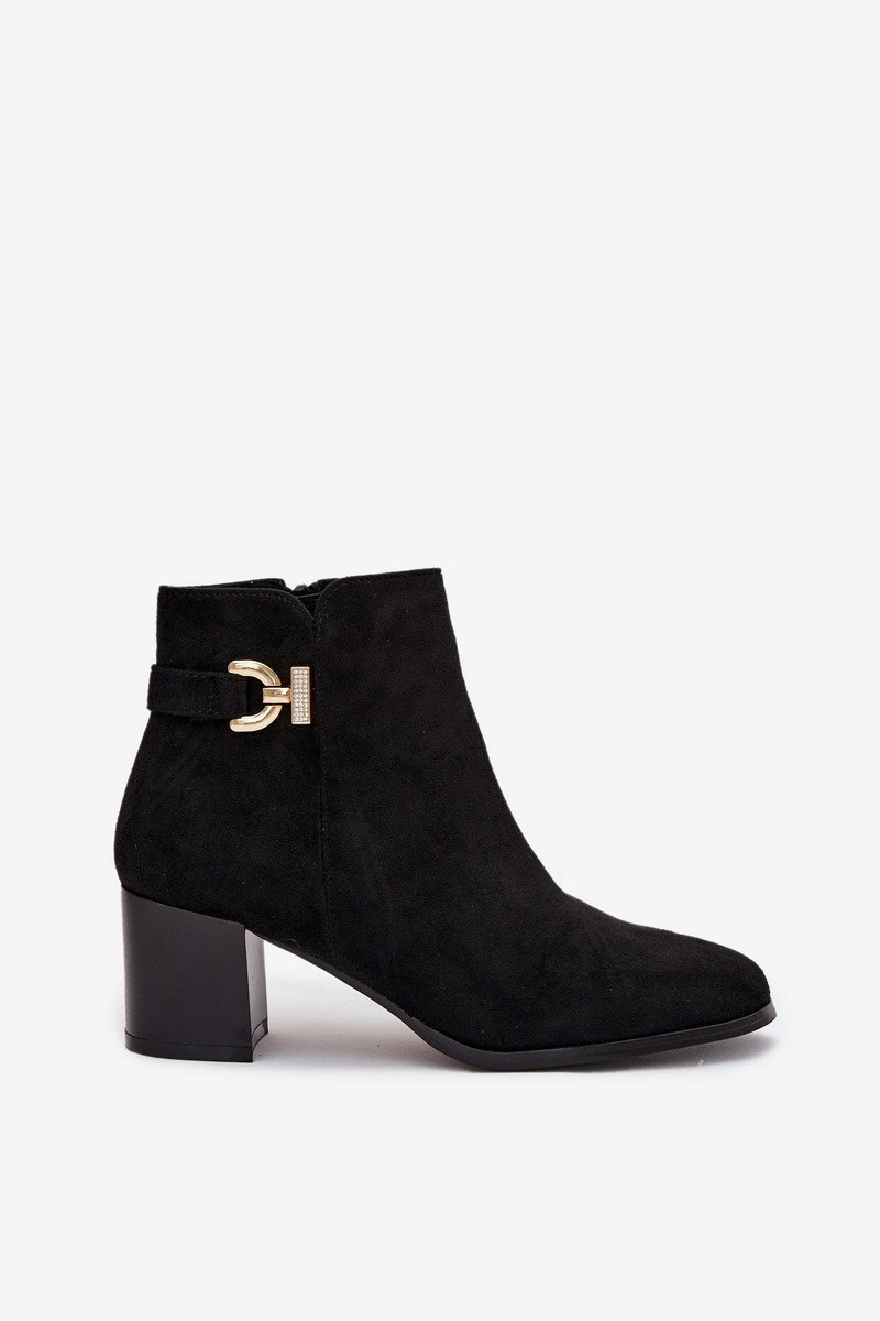 Zateplené dámské kotníkové boty na podpatku se zlatým detailem černé model 21708221 - Boto