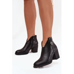 Zateplené dámské kotníkové boty na podpatku z ekokůže černé model 21711144 - Boto