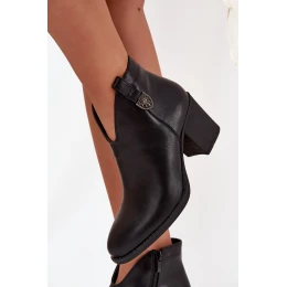 Zateplené dámské kotníkové boty na podpatku z ekokůže černé Talienne
