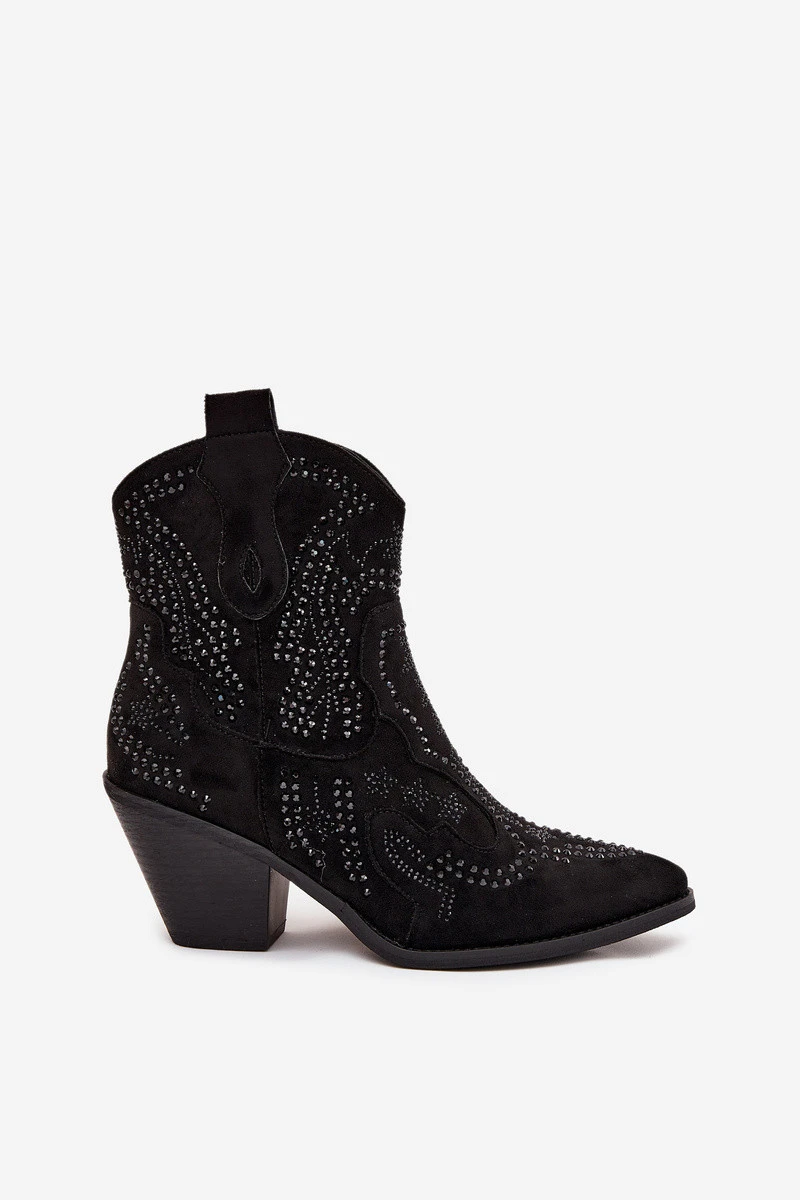 Dámské cowboy boty z eko semiše, posazené na sloupkovém podpatku, jsou módním návrhem na chladnější dny. Zapínají se na zip, což zajišťuje snadné obouvání, a zdobení na holeních jim dodává charakteristický cowboyský styl. Špičky v mandlovém tvaru jim dodávají jemnost a zateplení obuvnickou vlnou zajišťuje pohodlí a teplo. Perfektní pro volnočasové a boho stylizace, tyto boty jsou ideální volbou na podzimní a zimní sezónu. Při výběru velikosti se řiďte tabulkou velikostí.