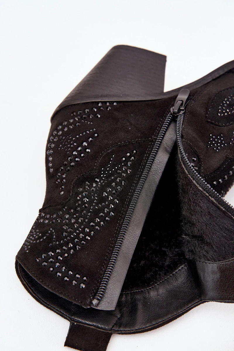 Zateplené Dámské Kotníkové Boty S Dekorací Černé Lelira