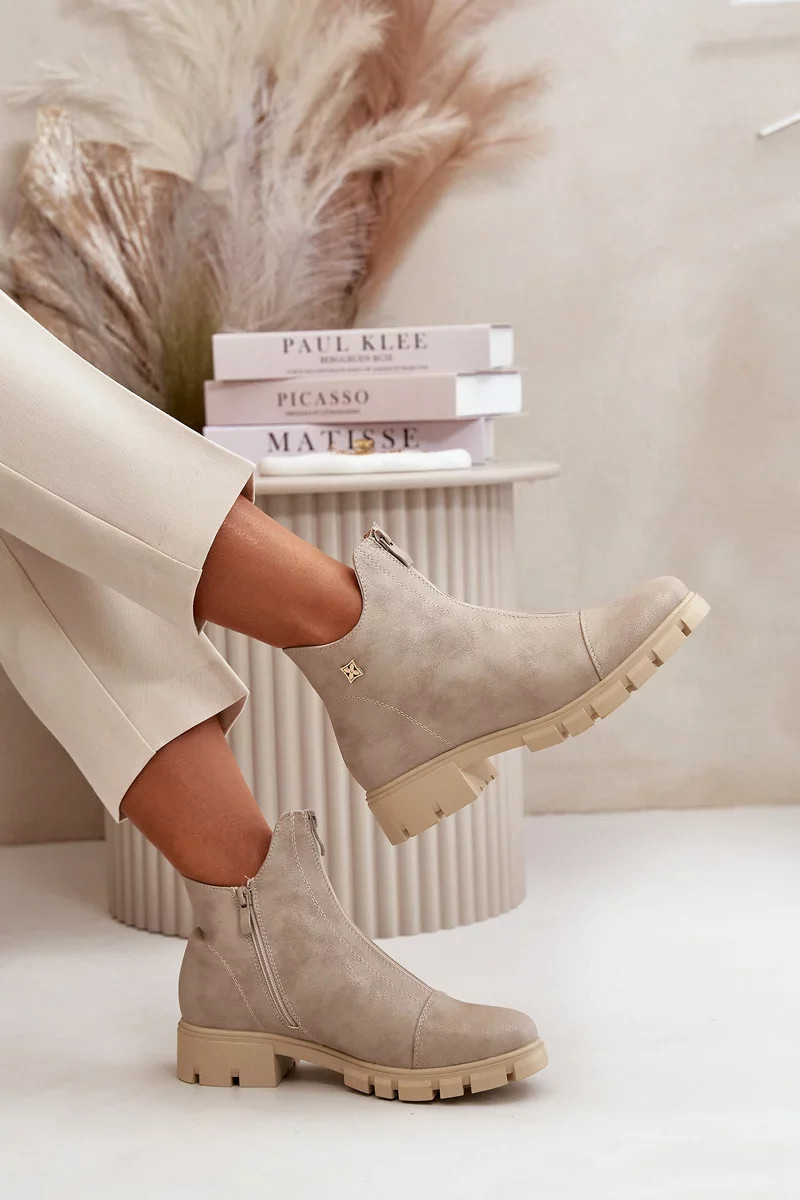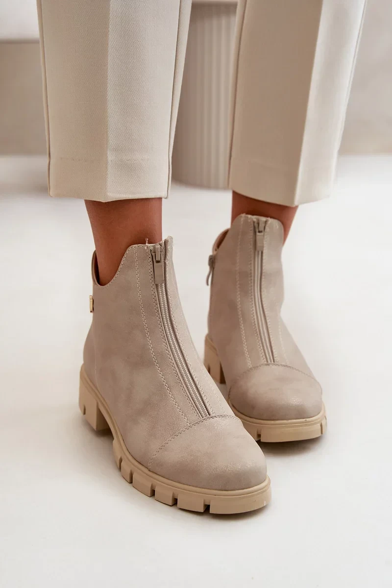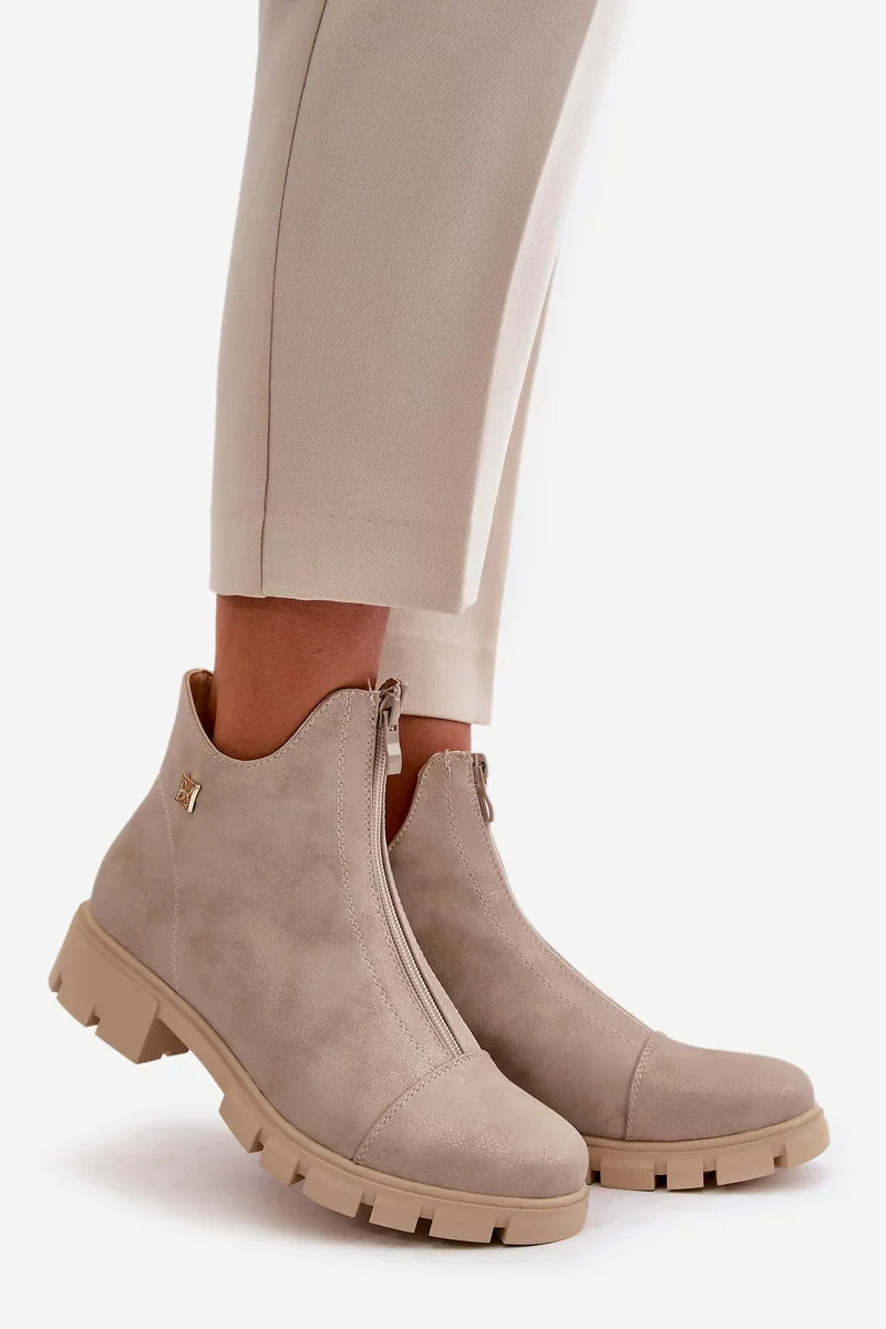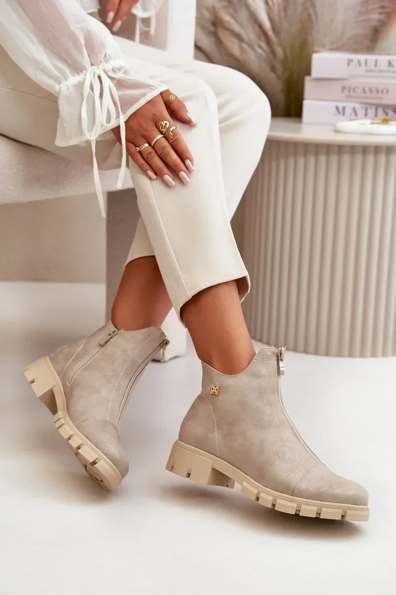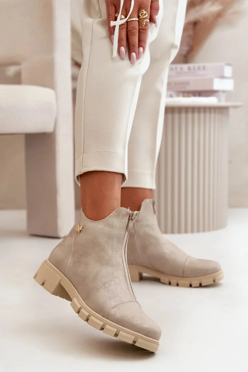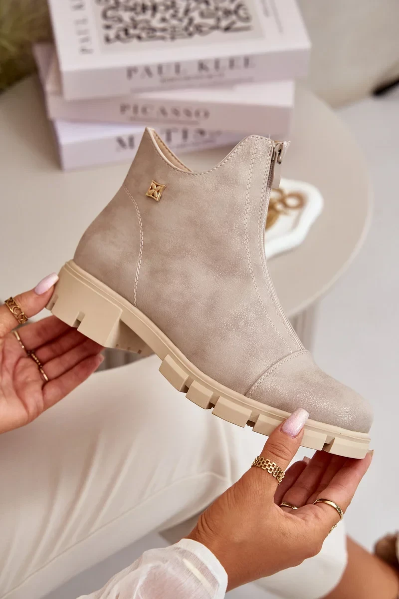 Zateplené Dámské Kotníkové Boty S Eko Kožené Zlaté model 20712781 - Kesi