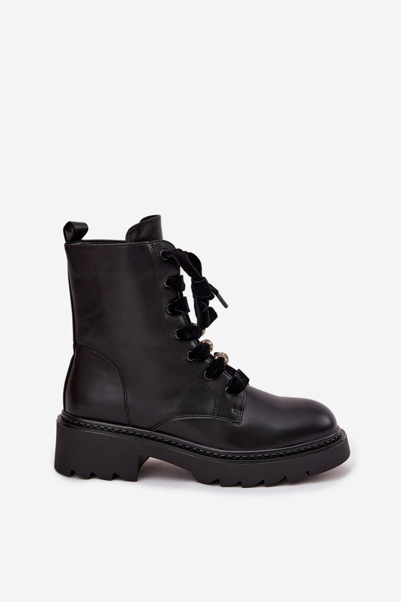 Zateplené dámské kotníkové boty s ozdobným šněrováním černé Elindra
