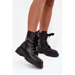 Zateplené dámské kotníkové boty s ozdobným šněrováním černé model 21715077 - Boto