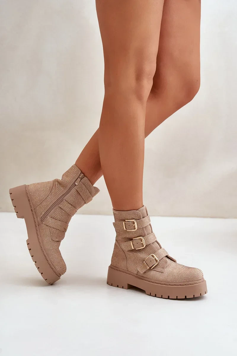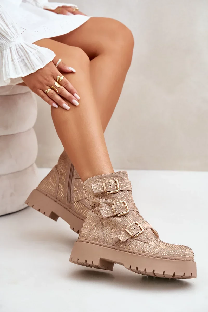 Zateplené Dámské Kotníkové Boty s Ozdobou Béžové Ciascia
