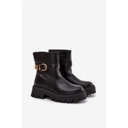 Zateplené dámské kotníkové boty se zlatým sponem Černé Elanore